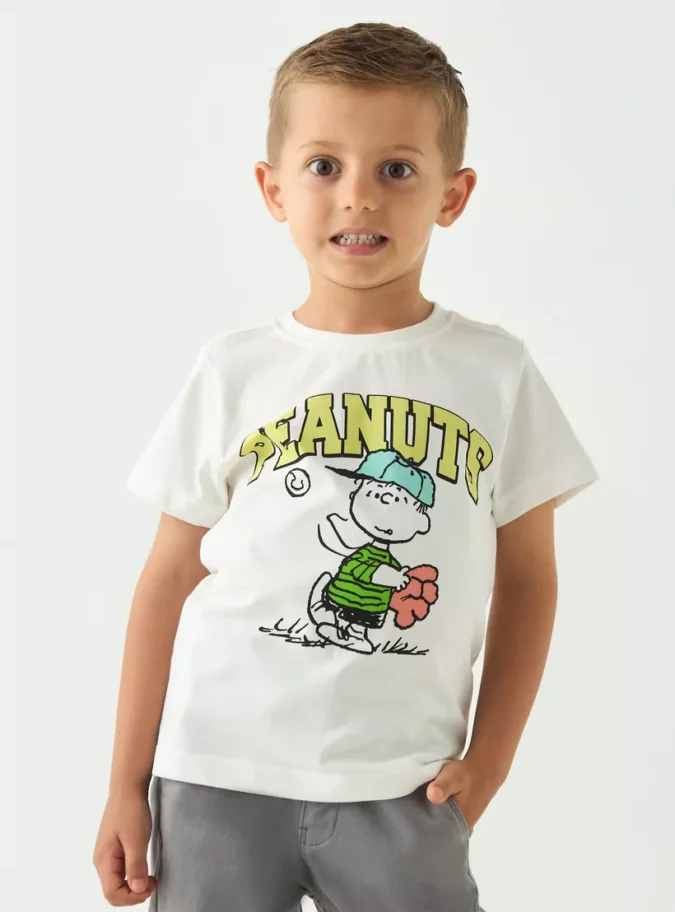 Peanuts Graphic Print: Features a fun, vibrant graphic from the beloved Peanuts characters.