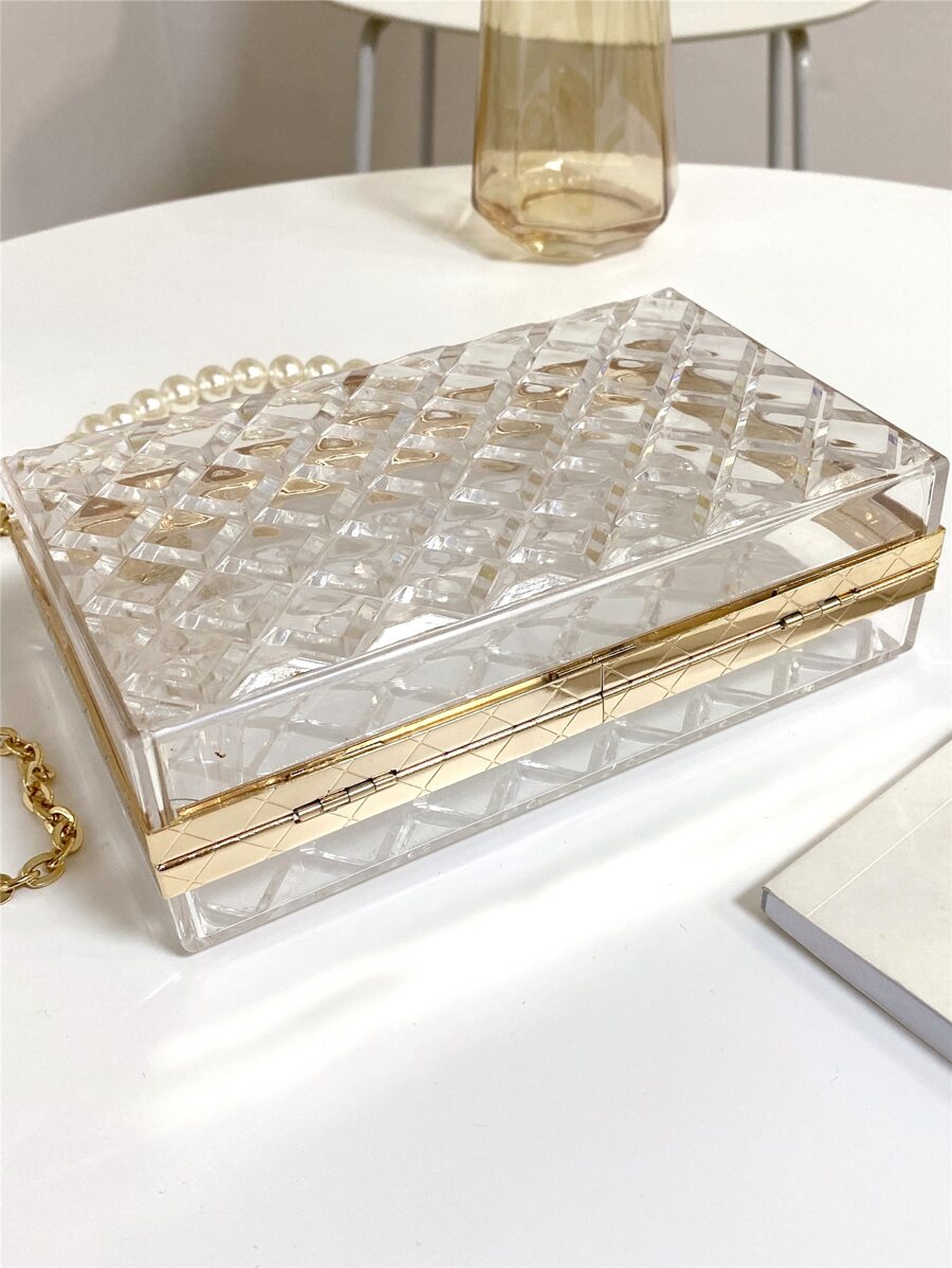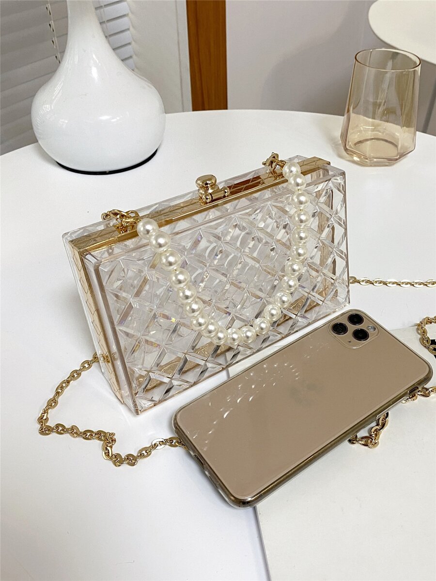 Pearl Handle Acrylic Mini Box Bag, Transparent Rhombus Clasp Pouch, Fashion Women’s Evening Clutch Party Box Bag
