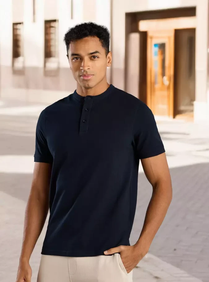 Modern Mandarin Collar: A sleek, stand-up collar design that offers a sophisticated alternative to traditional polo styling