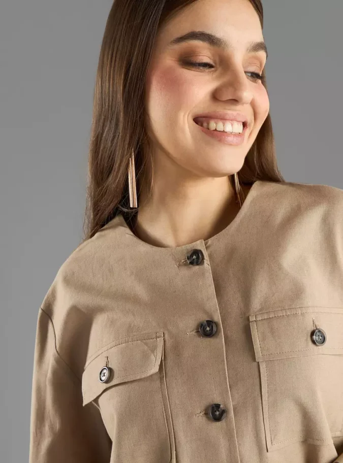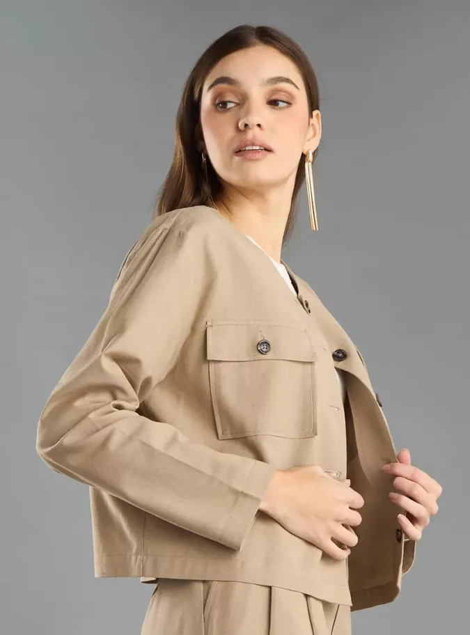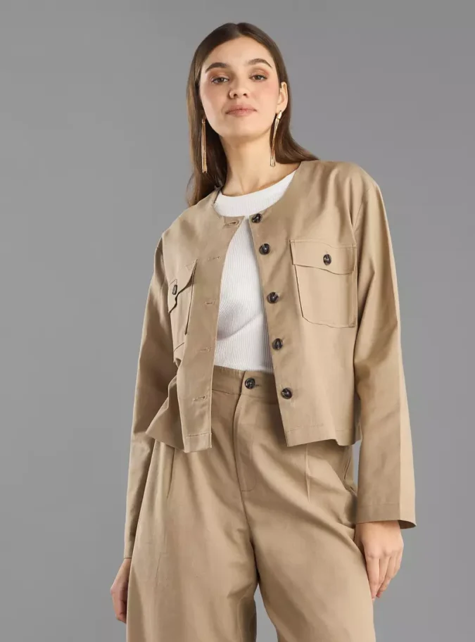 • Cropped Silhouette: Flatters the waistline and pairs perfectly with high-rise styles.