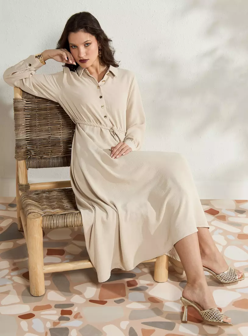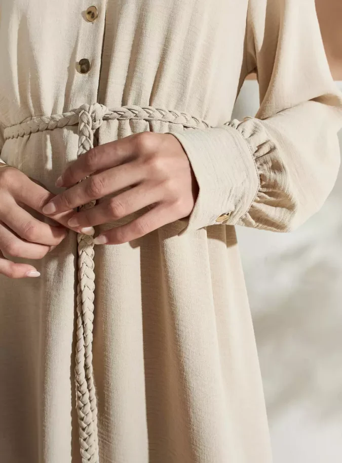 Braided Tie-Up Belt: Adds texture and allows a customizable waist fit.