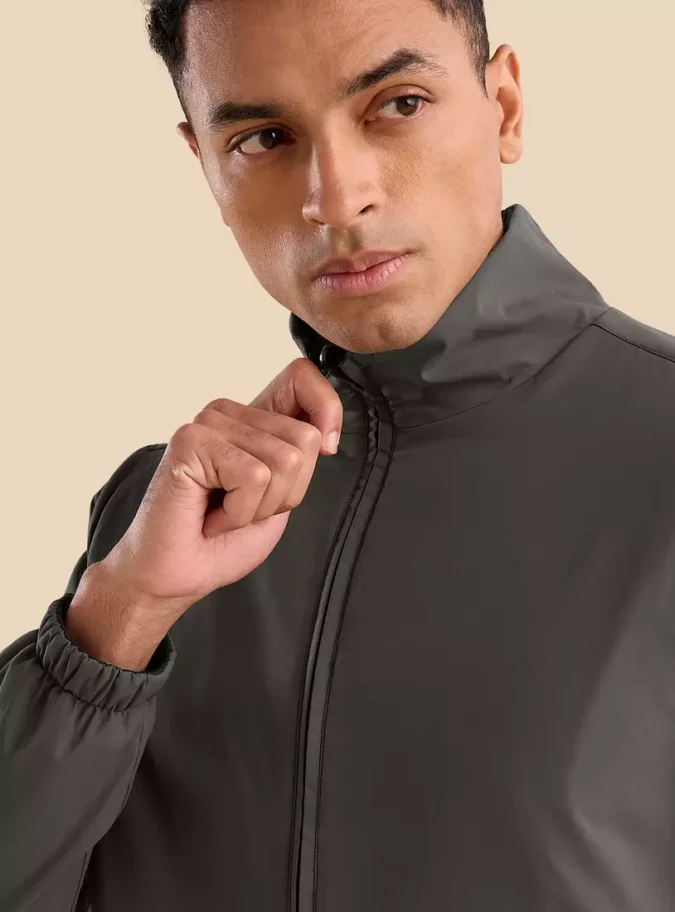 Protective High Neck: Extended collar for added warmth and wind protection