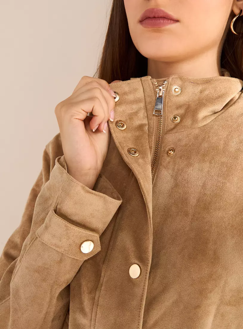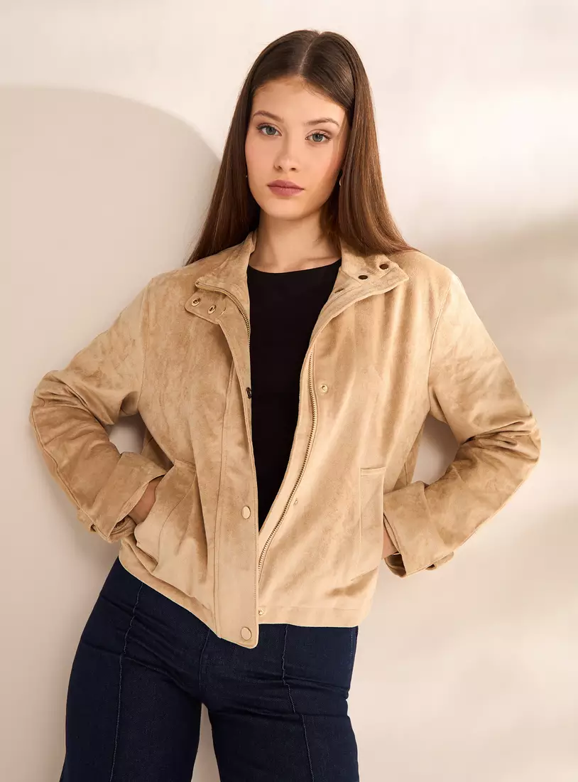 Front Zip or Button Closure: Simple and versatile fastening option.