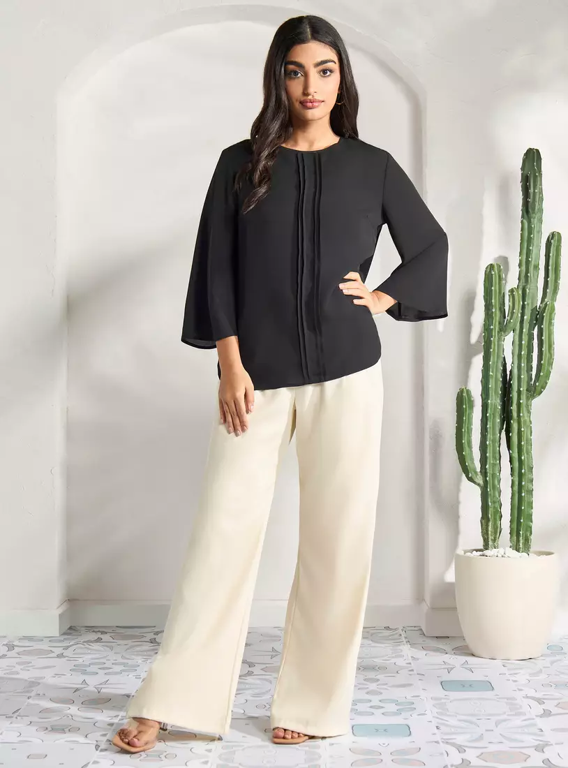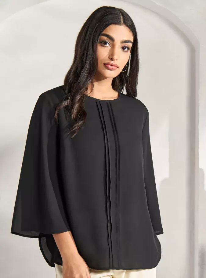 Classic Design: Minimalist plain top enhanced with delicate pintuck details for added sophistication.