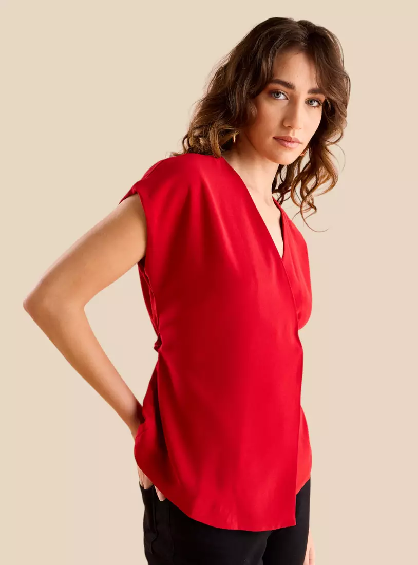 Plain V-neck Top with Tie-Up Belt