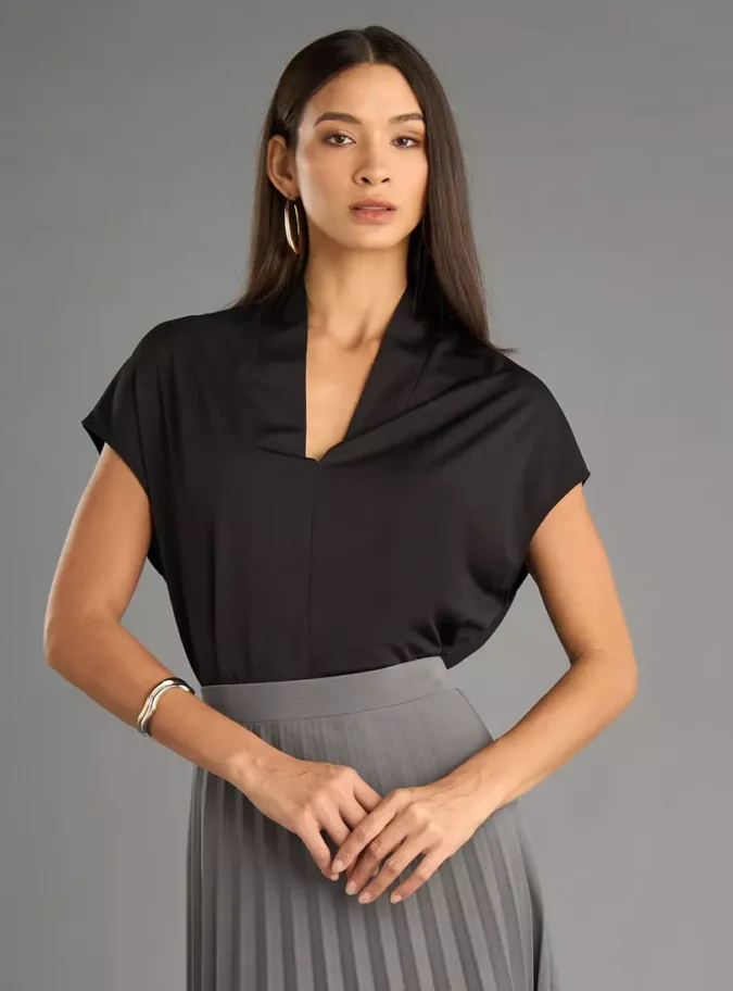 • Classic V-neck design that enhances your neckline.
