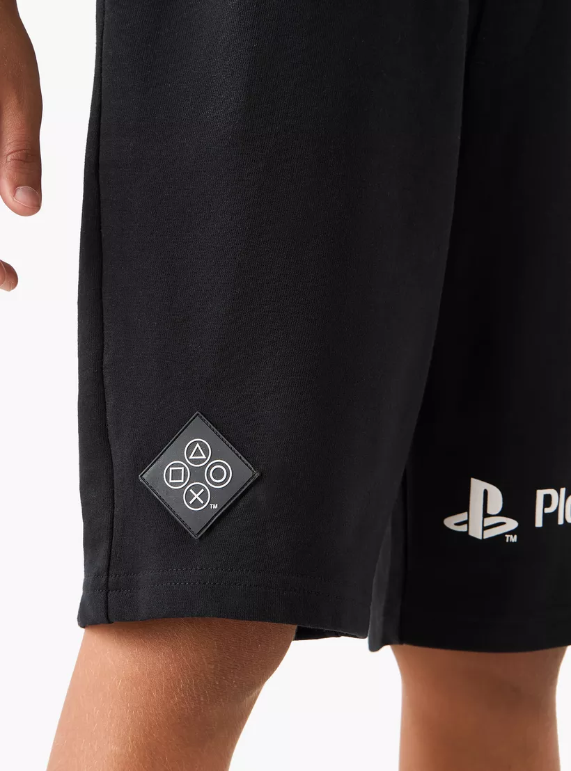 PlayStation Logo Print Shorts with Drawstring Closure and Pockets