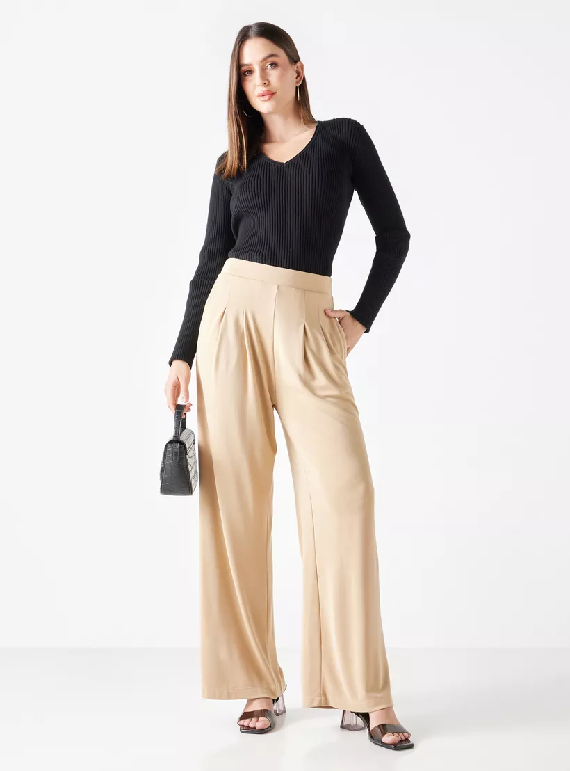Pleated Trousers with Pockets and Semi-Elasticated Waistband