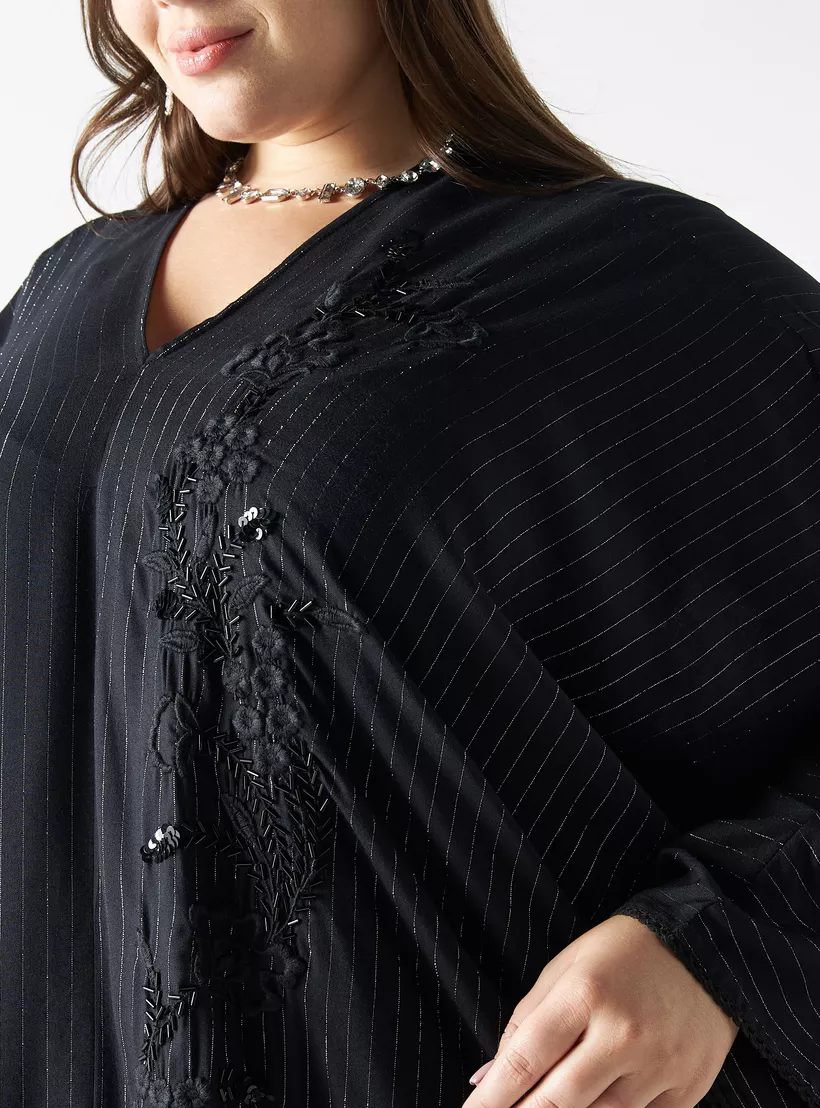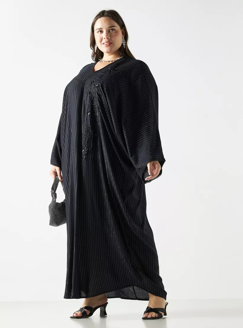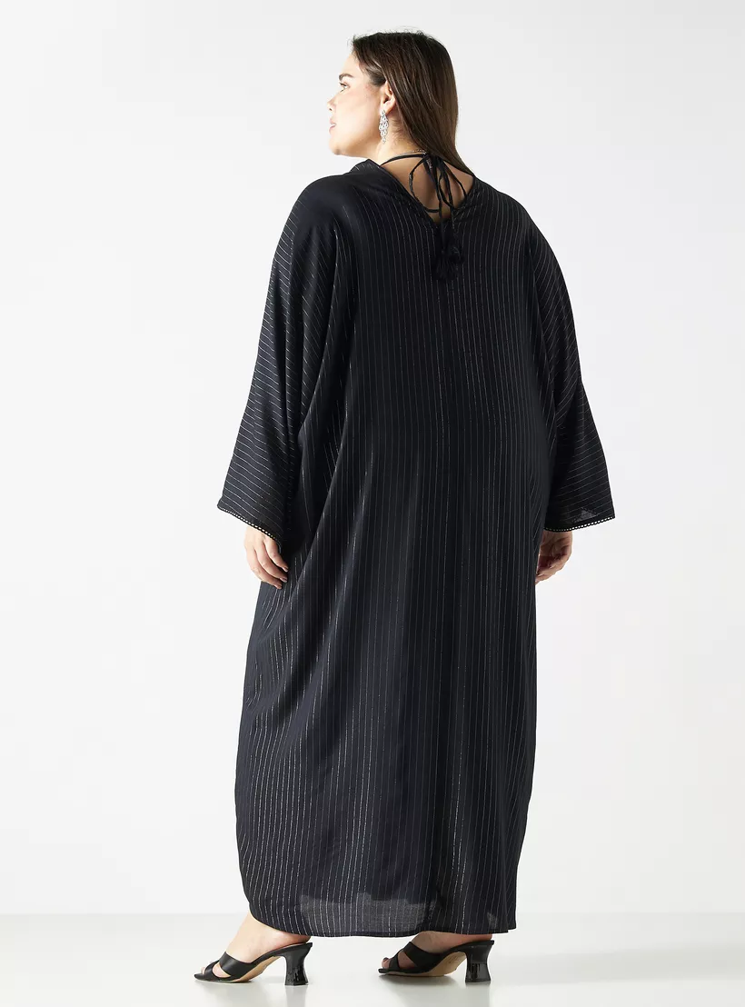 Plus Size Embellished Kaftan Dress with V-neck and Tie-Up Detail