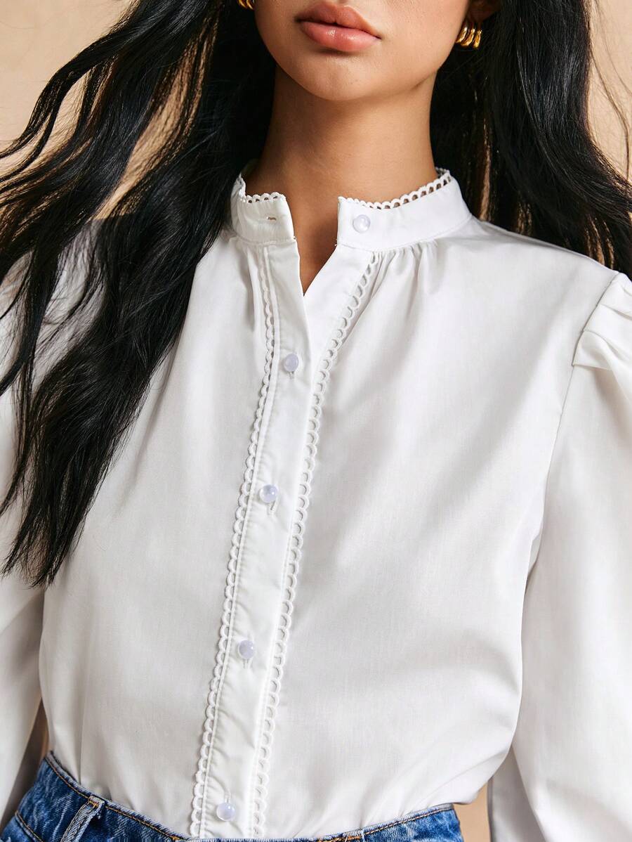 Poéselle 100% Cotton Lace Detail Lantern Sleeve Blouse quantity