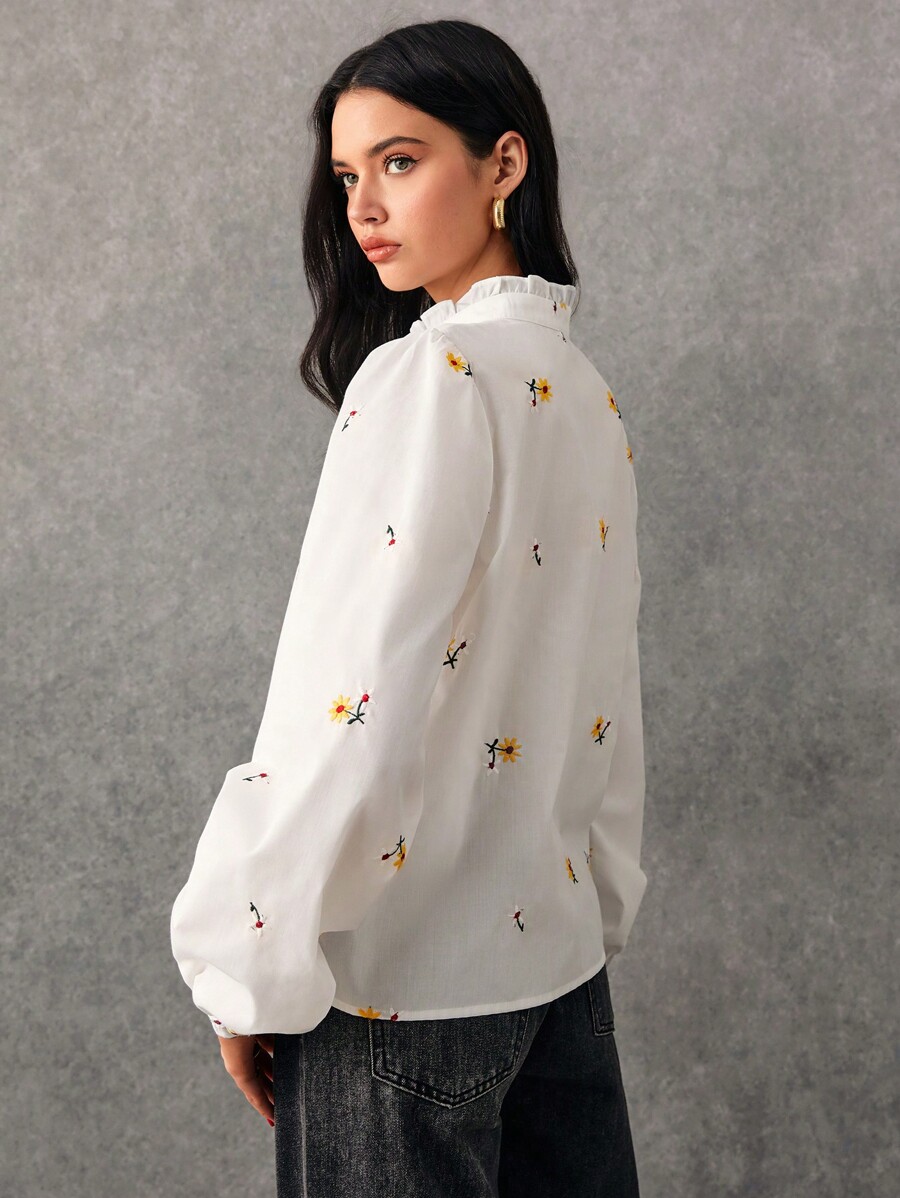 Poéselle Women Floral Embroidery Button Up Casual Long Sleeve Shirt,Work Shirt,White Shirt quantity