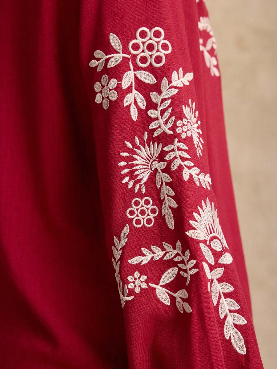 Poéselle Women's Burgundy Contrast Floral Pattern Full Embroidered Long Sleeve Linen Casual Shirt quantity