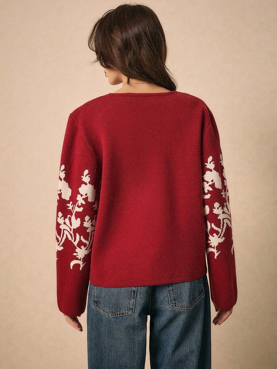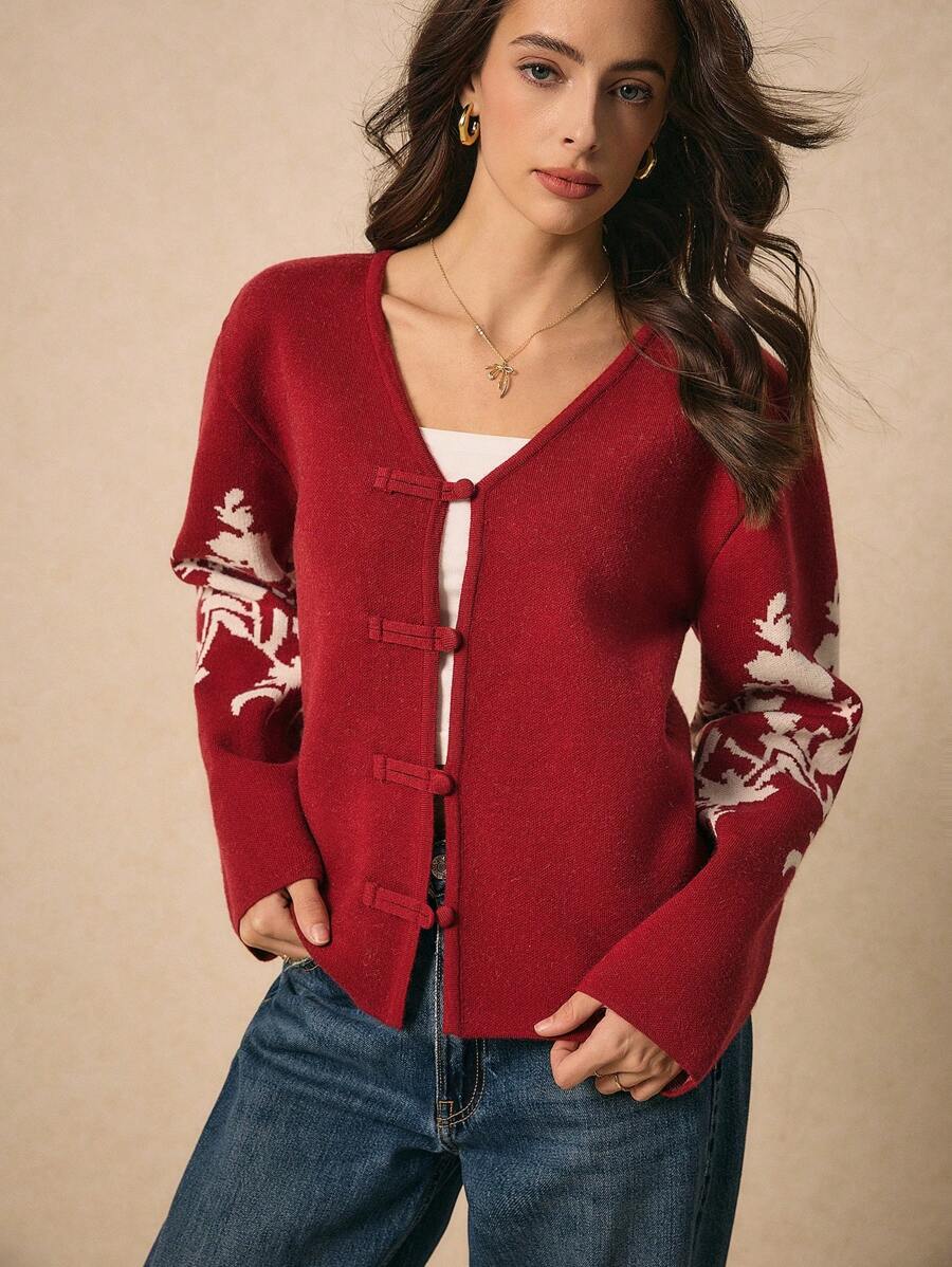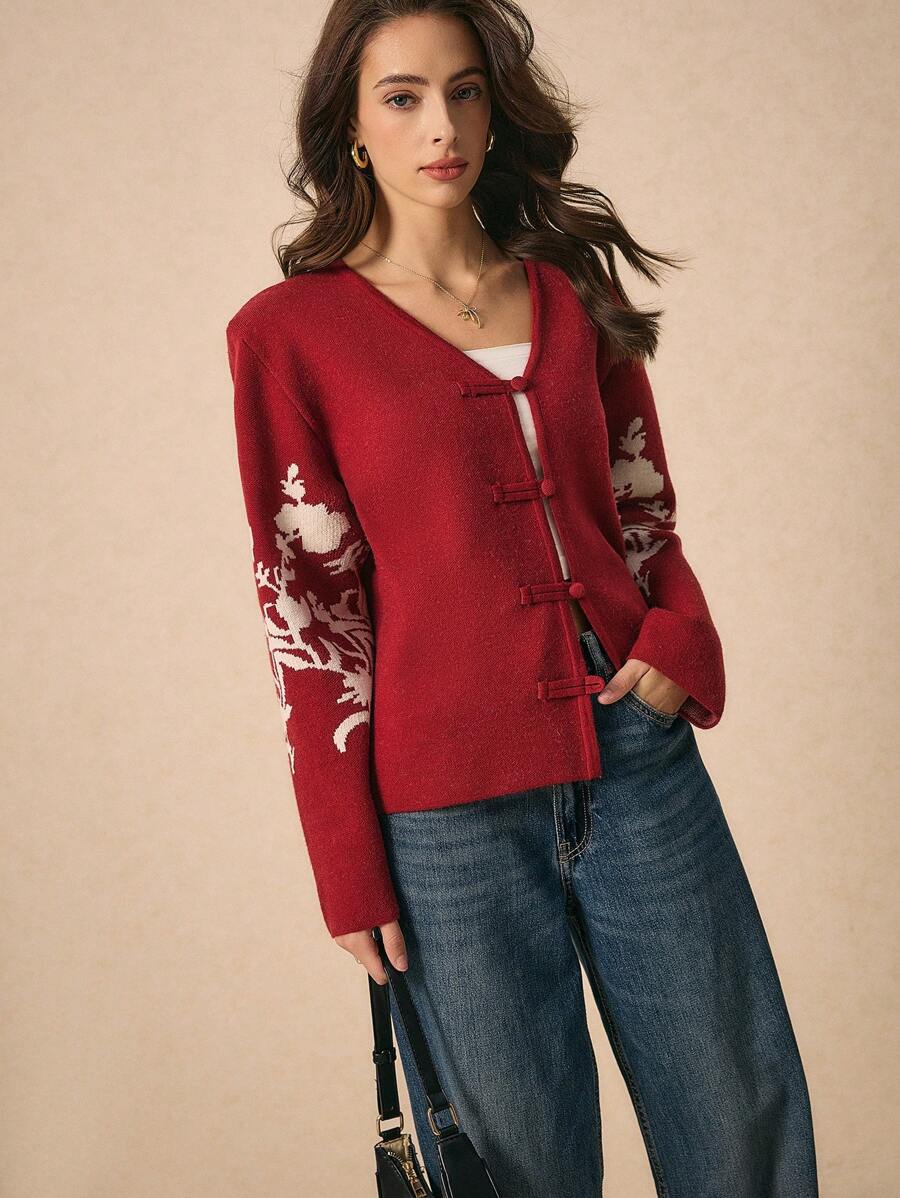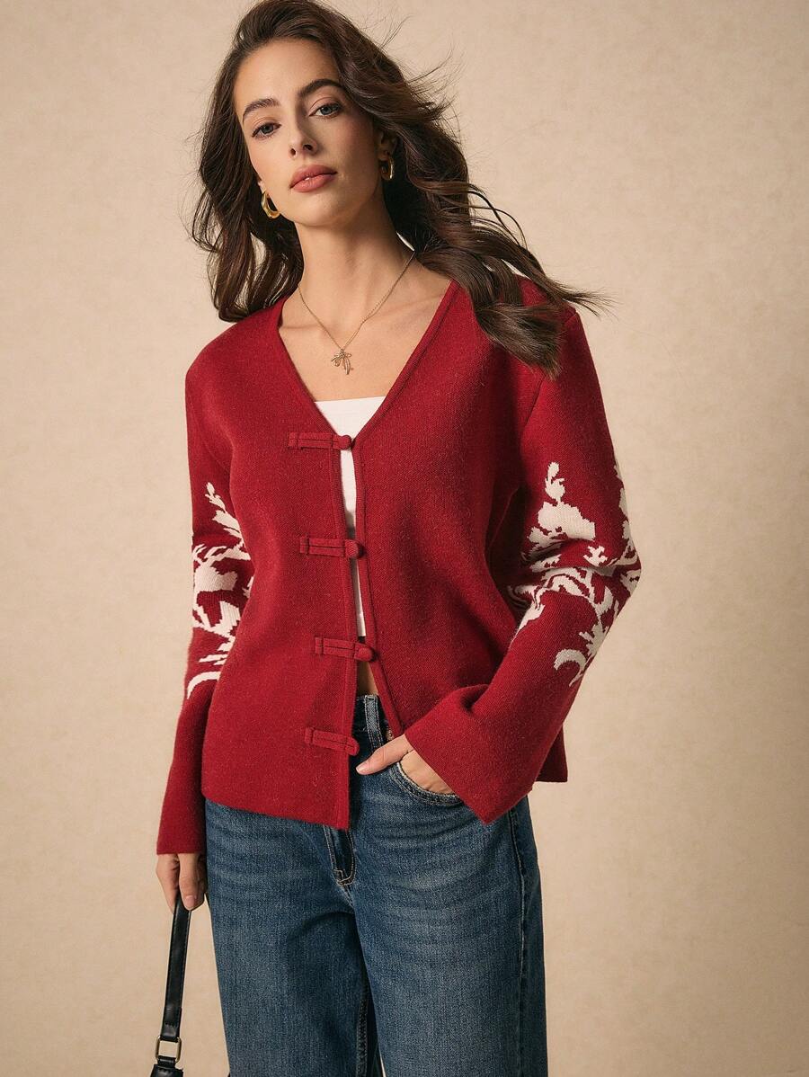 Poéselle Women’s Floral Print Red Cardigan, Sweater Fall Winter Women Sweaters Fall Long Sleeve
