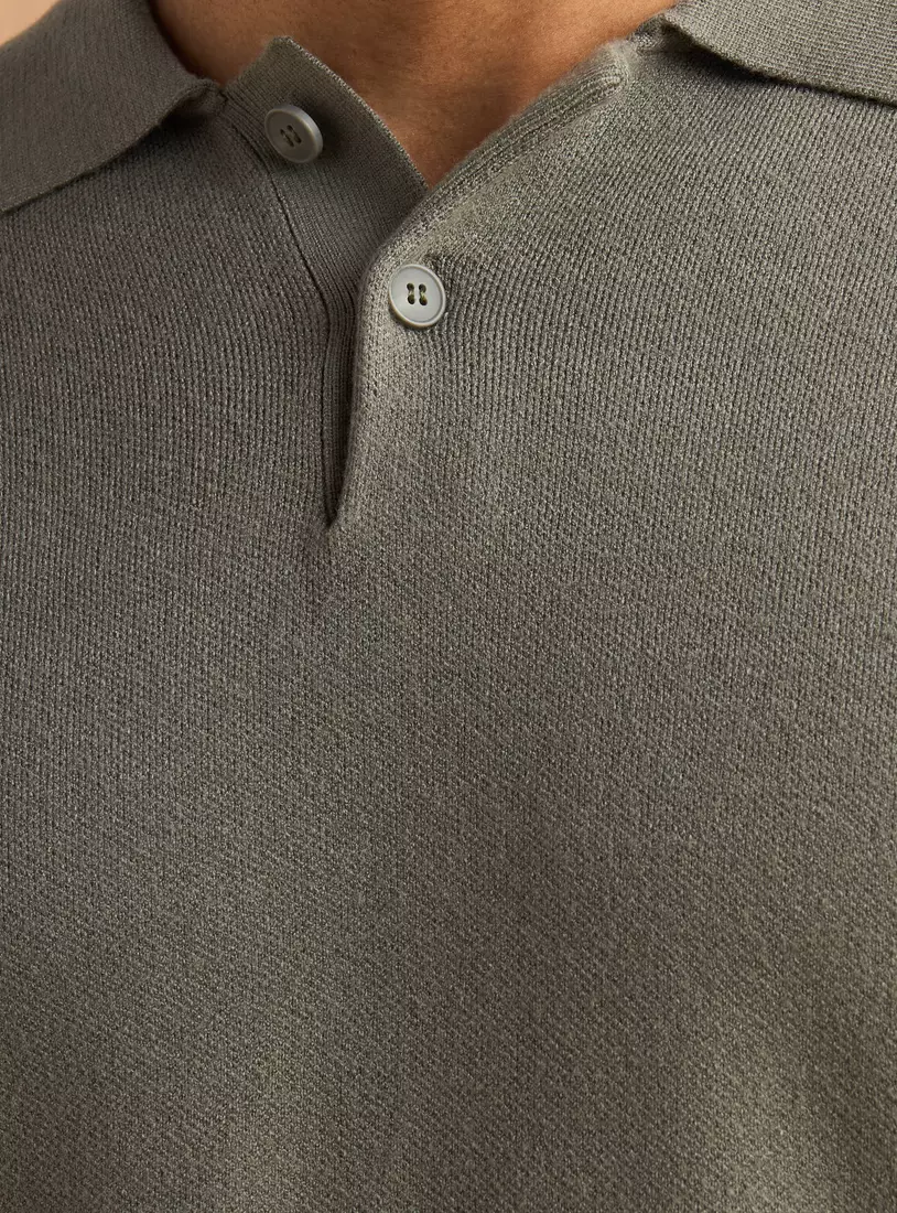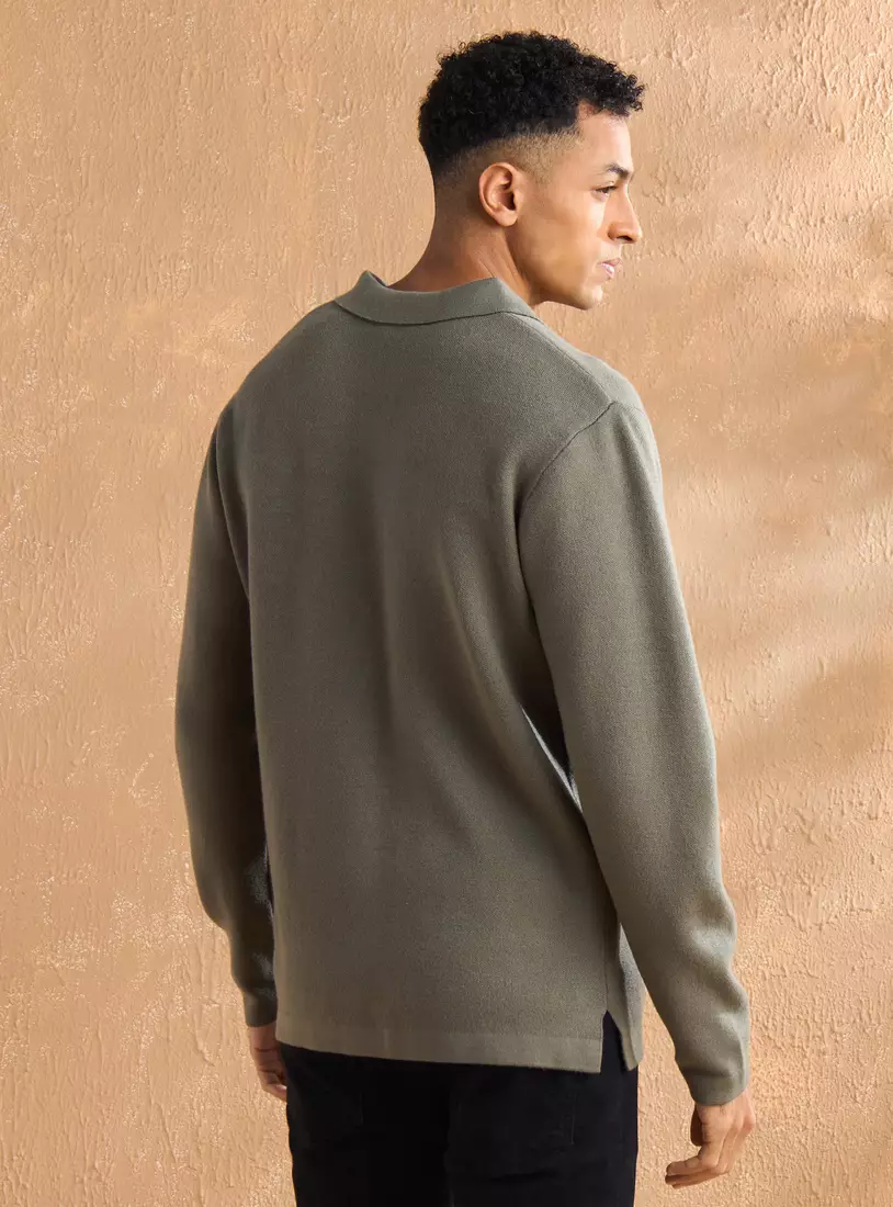 • Classic Polo Collar: The sweater features a timeless polo collar with a button placket, adding a refined yet relaxed style to the classic sweater silhouette.