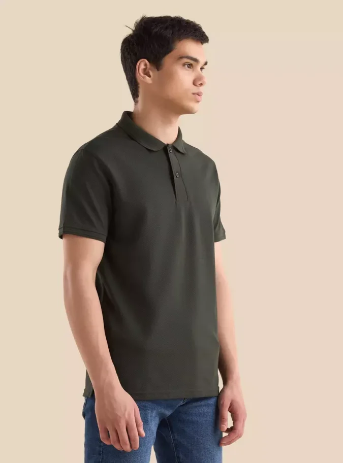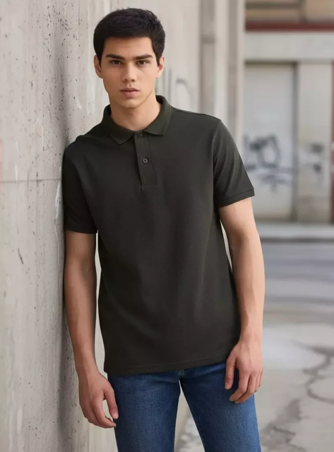 Popcorn Textured Polo T-shirt with Jacquard Tipping