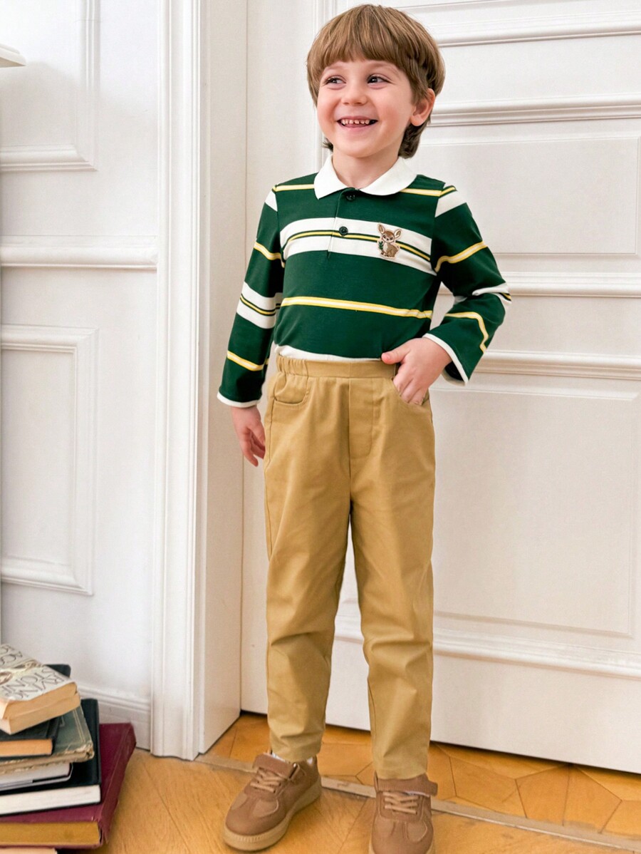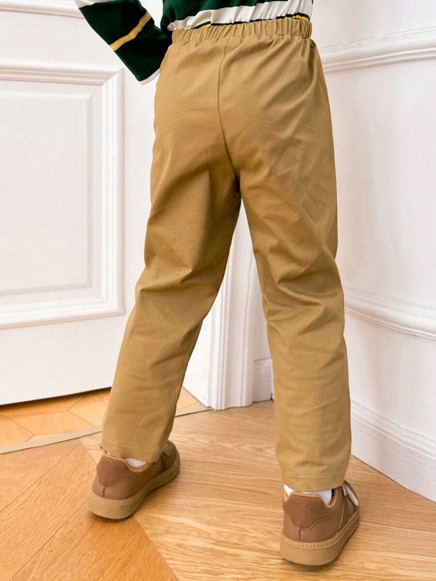 / PrepCrw Young Boys Brown Woven Elastic Waist Pants, Back To School Season, Fall/Winter