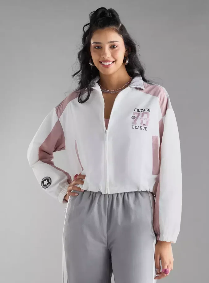 Classic Varsity Style: Contrast ribbed collar, cuffs, and hem for a signature look.