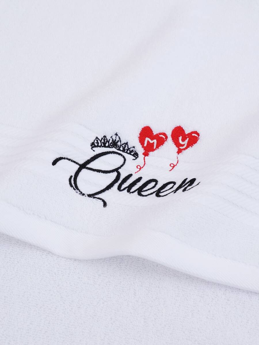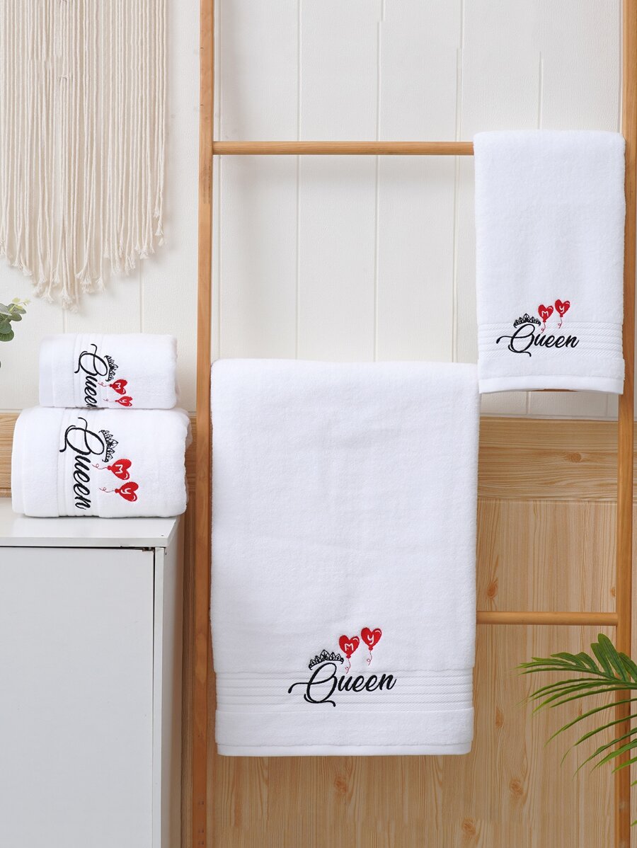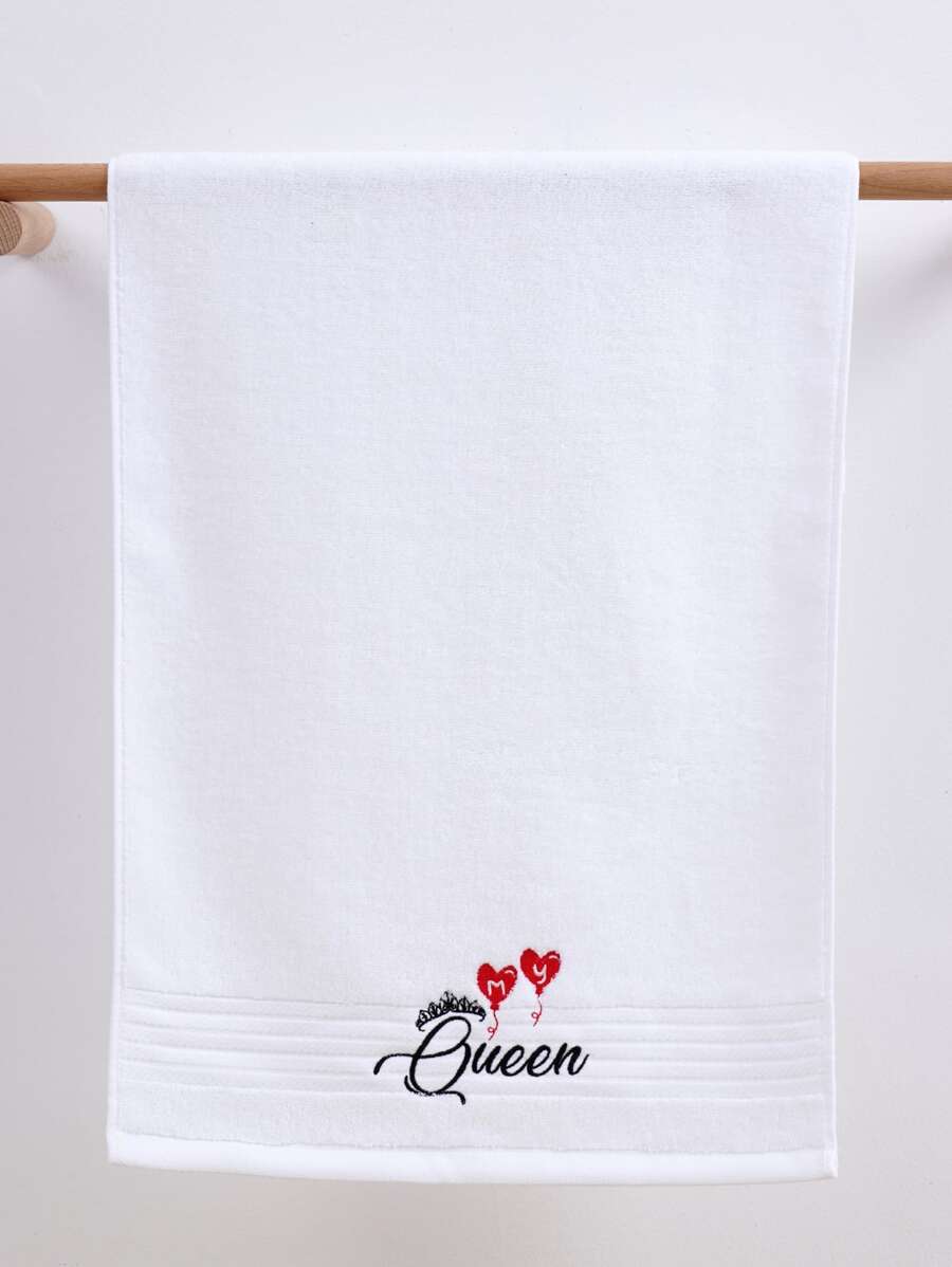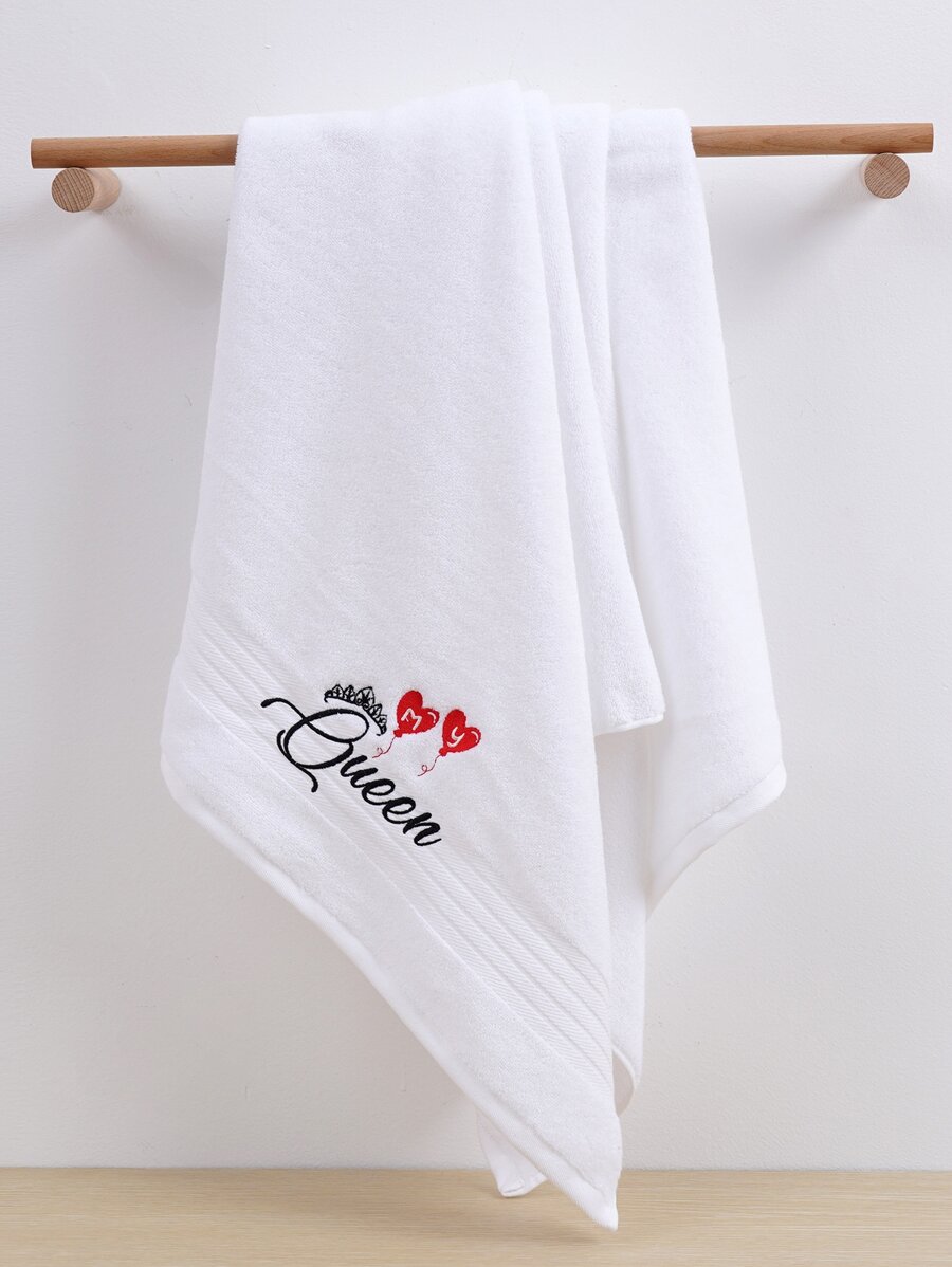 QIBHI 1pc Letter & Heart Embroidery Bath Towel Or 1pc Face Towel, Soft Towel For Bathroom quantity