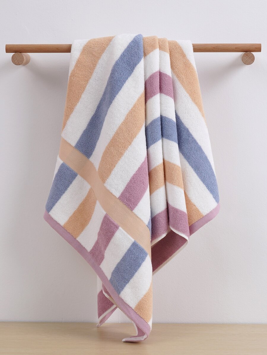/ QIBHI 1pc Striped Pattern Bath Towel Or Towel, Modern Fabric Towel For Bathroom