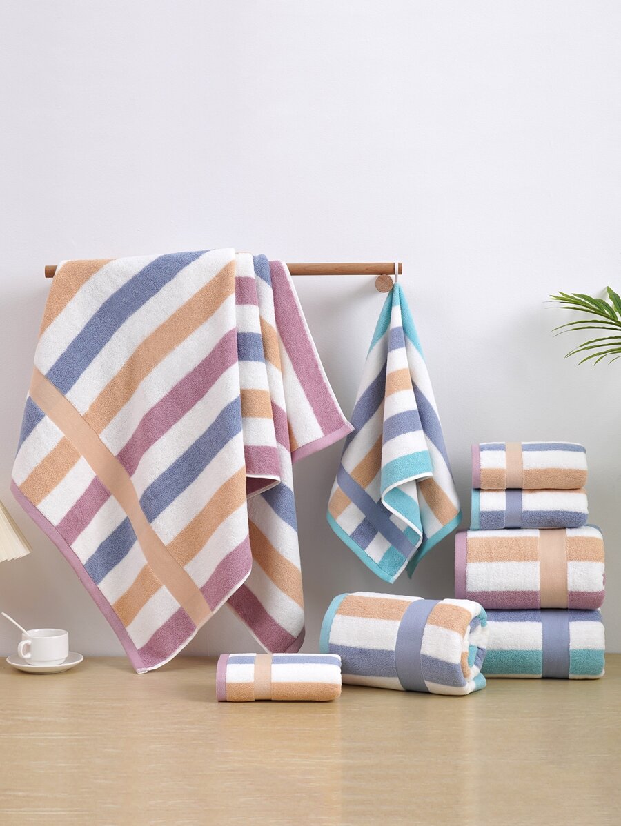 QIBHI 1pc Striped Pattern Bath Towel Or Towel, Modern Fabric Towel For Bathroom quantity