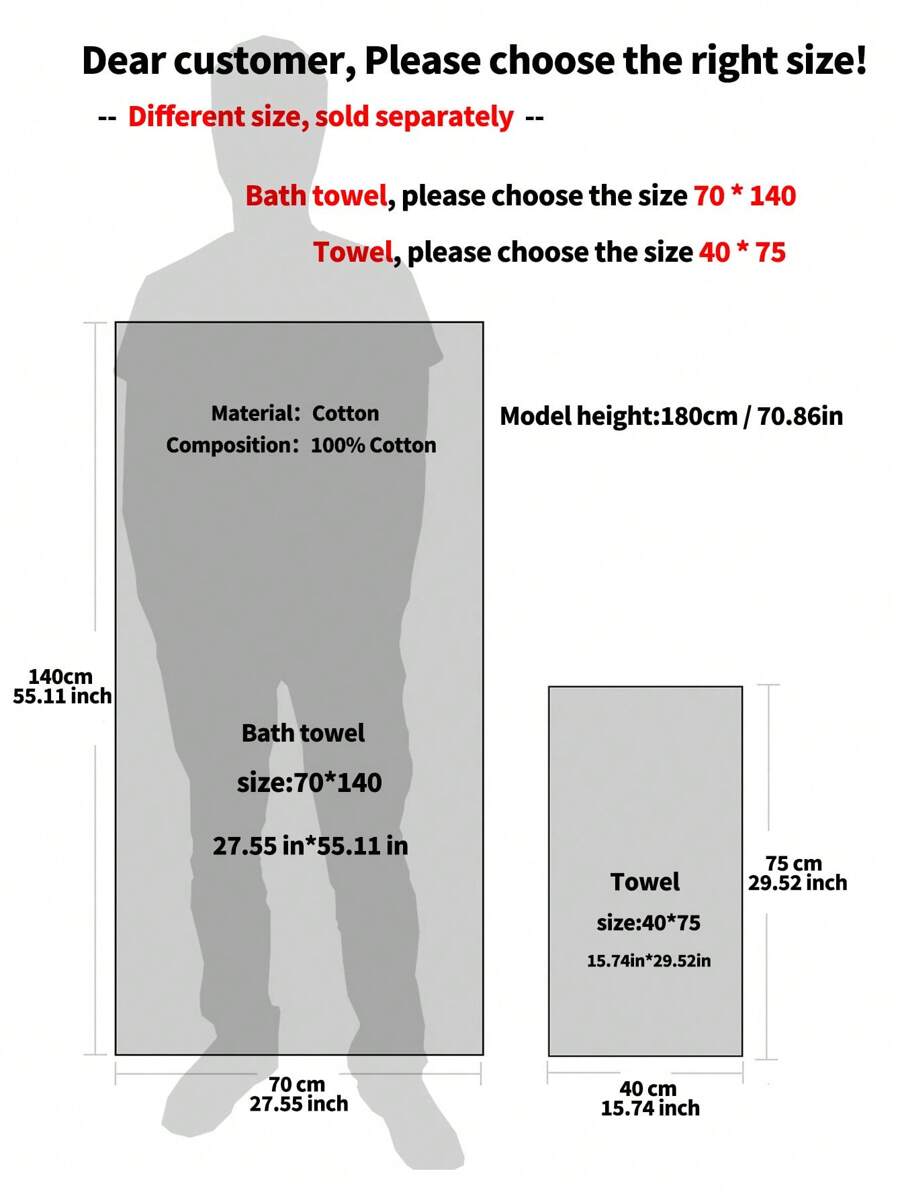 QIBHI 1pc Terry Bath Towel Or Bath Sheet, Soft And Absorbent Couple Style Face Or Body Towel For Bathroom Or Swimming Pool, Choose Your Favorite Size