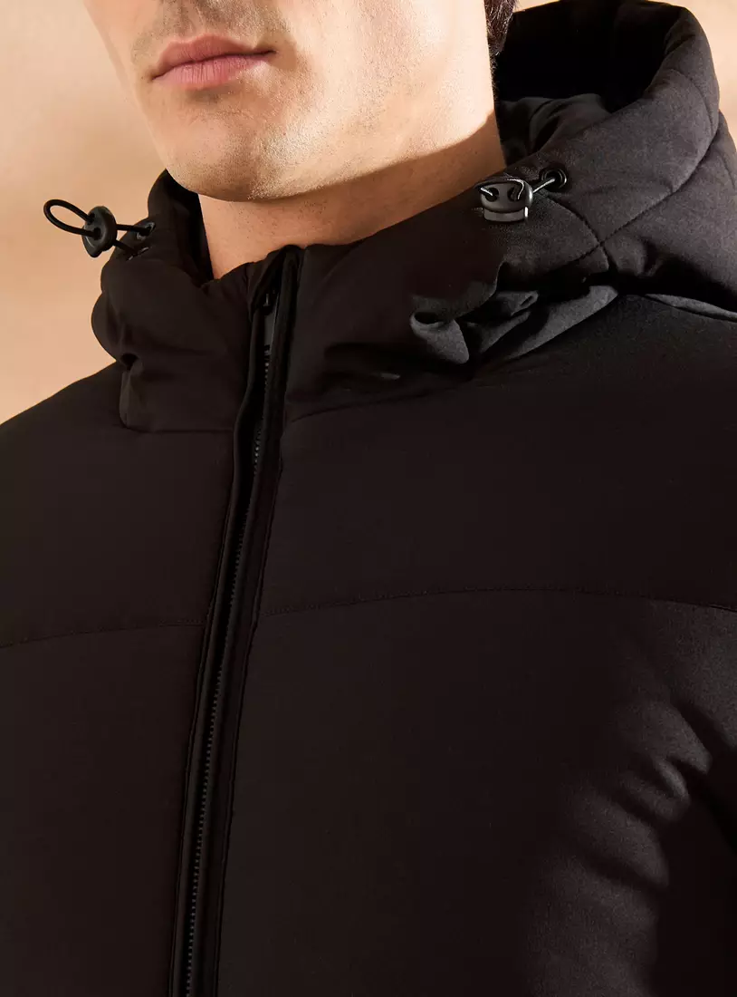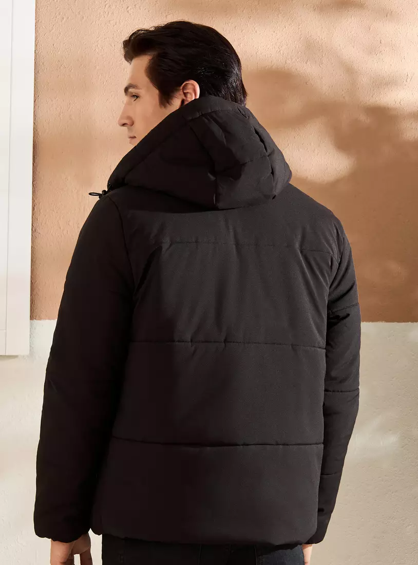 Adjustable Insulated Hood: The attached, padded hood includes a drawstring adjustment to secure it against wind and cold, ensuring full-head protection in harsh conditions.