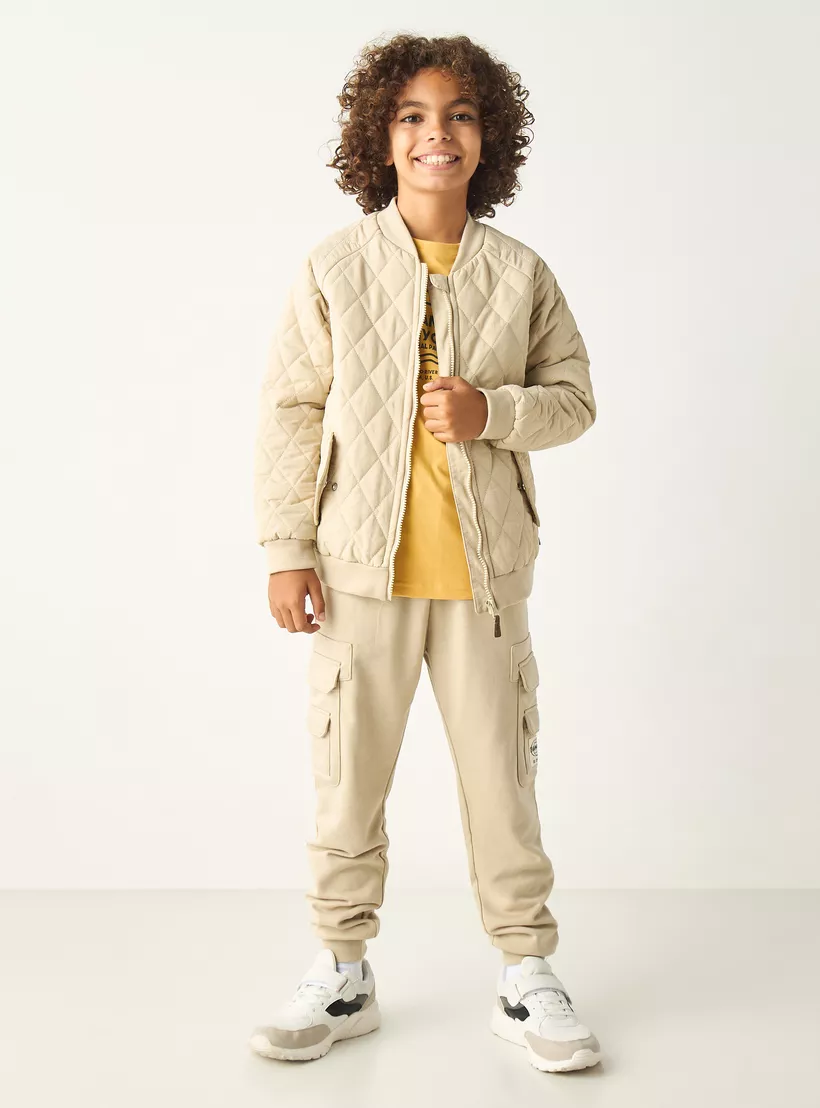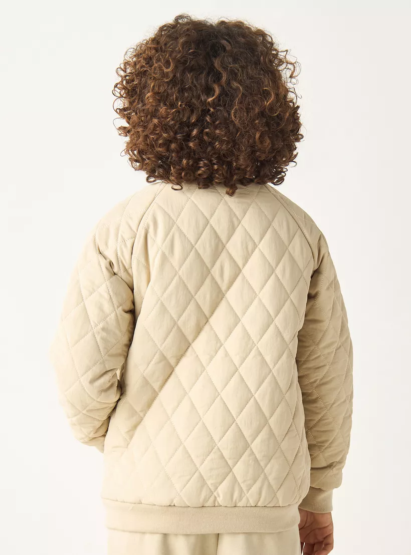 Quilted Zip-Through Jacket with Long Sleeves and Pockets