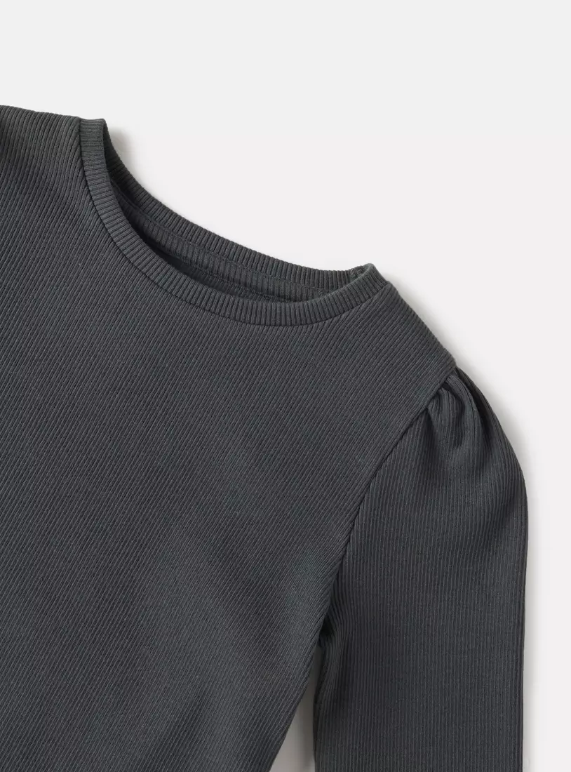 Ribbed Knit Fabric: Soft, stretchy, and breathable with a textured finish.
