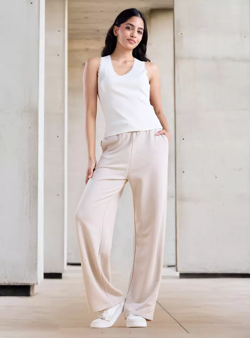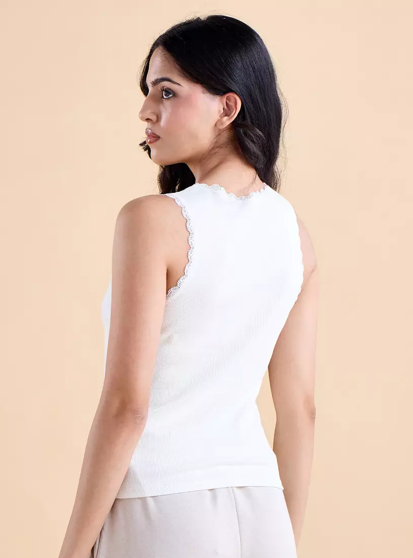 Ribbed V-neck Tank Top with Lace Insert