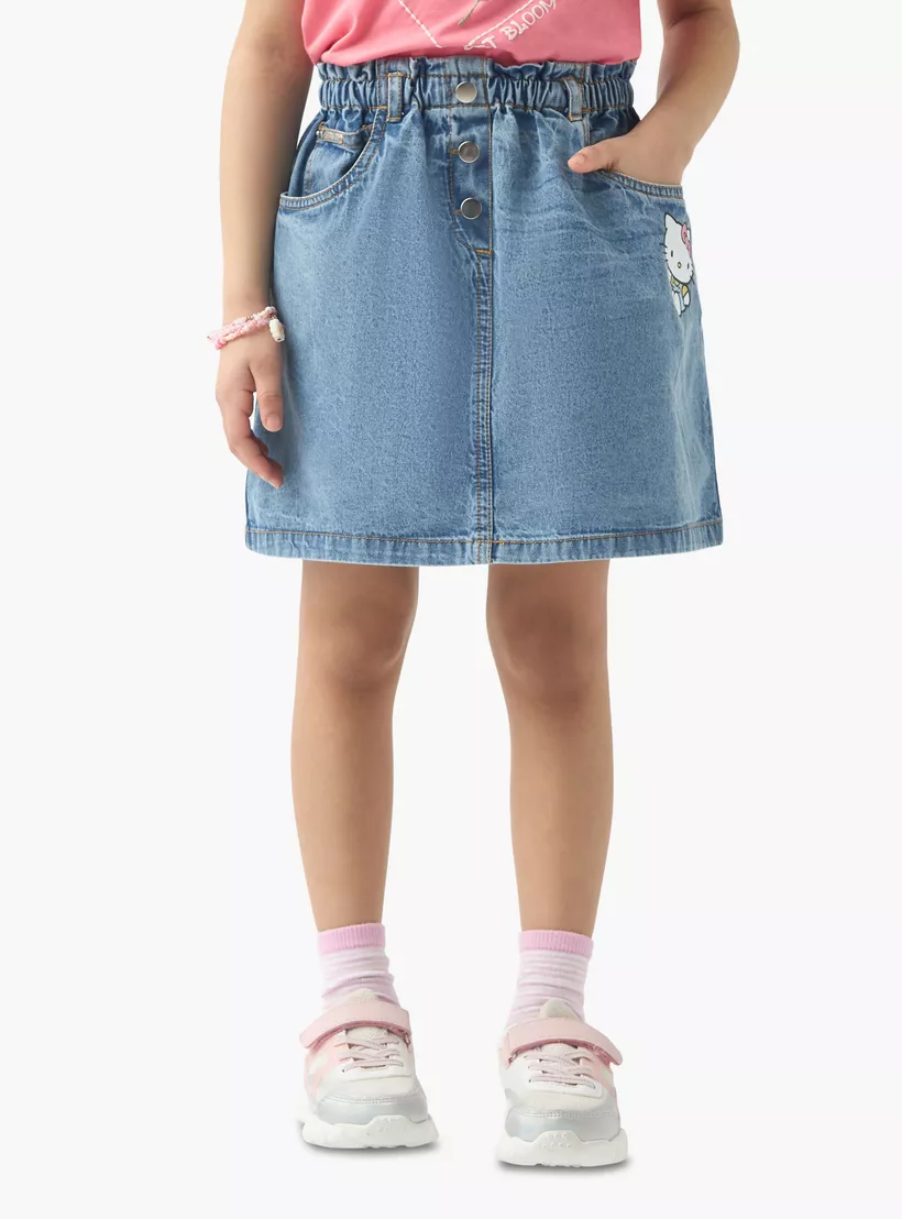 Sanrio Hello Kitty Print Denim Skirt with Elasticated Waist