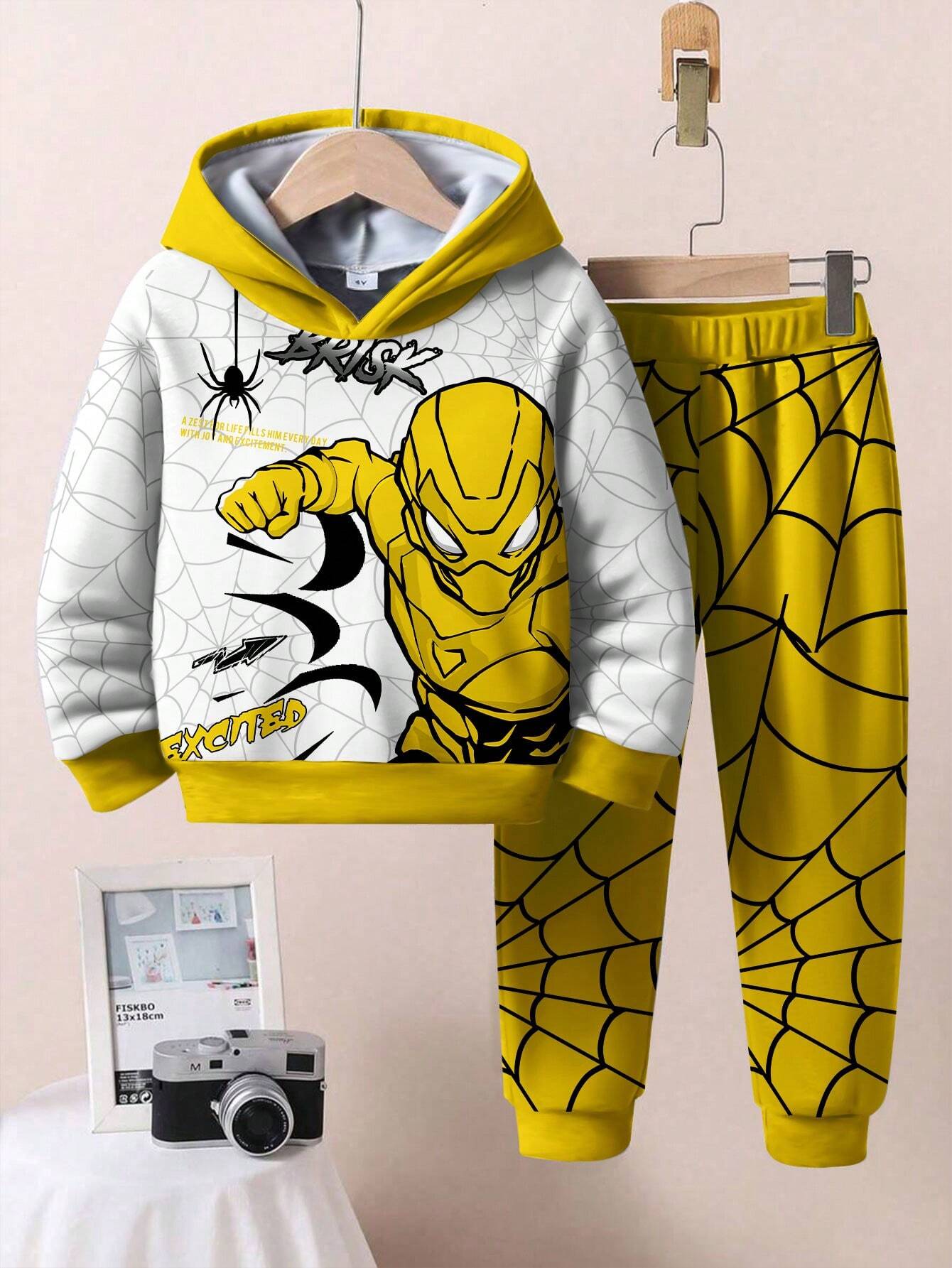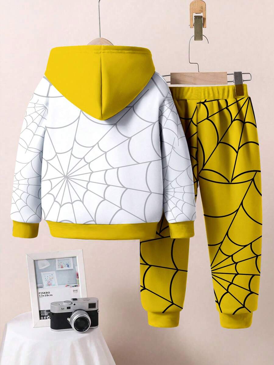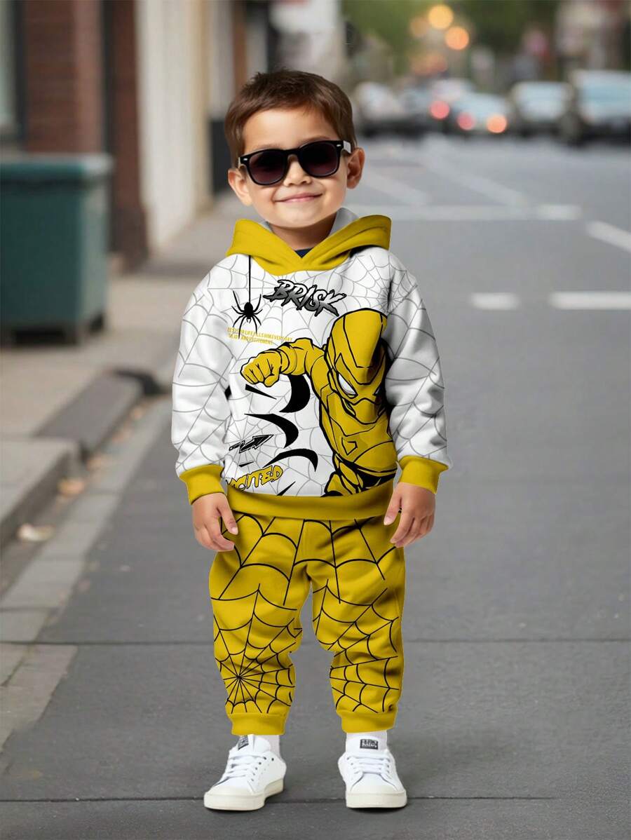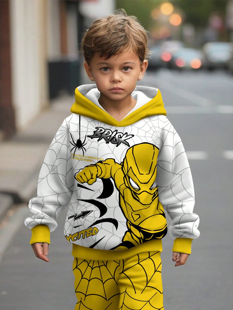 / SHEIN 2pcs/Set Boys’ Loose Casual Pullover Hoodie Outfit, Comfortable & Simple Design, Suitable For Autumn/Winter