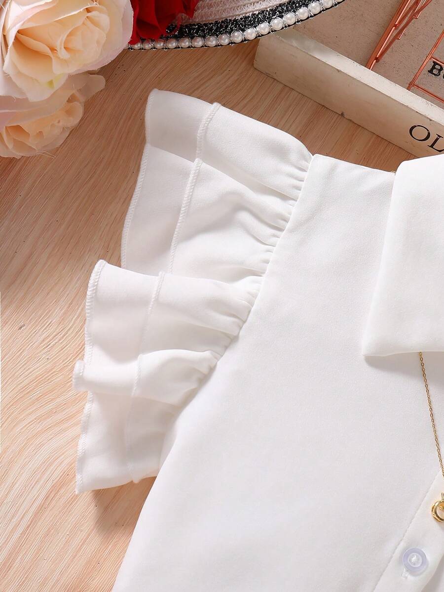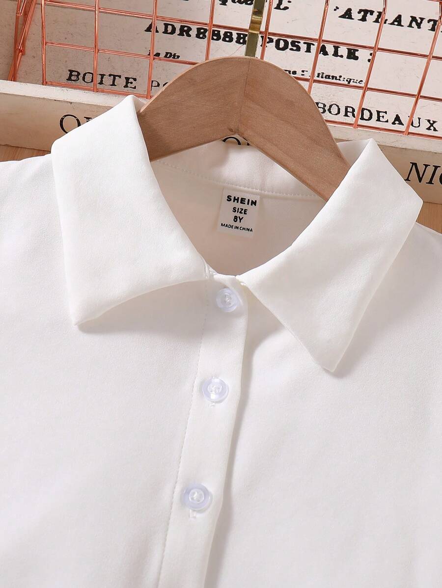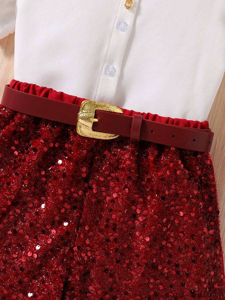 SHEIN 2pcs/Set Girls Plus Size Summer Cap Sleeve Shirt & Sequin Shorts Set