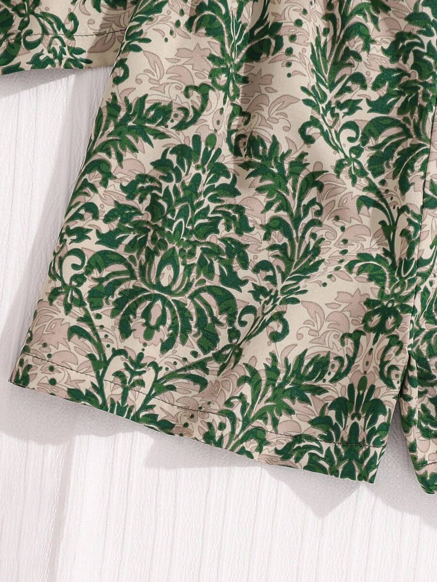 SHEIN 2pcs/Set Tween Girl Floral Printed Shorts And Blouse Outfit, Elegant And quantity