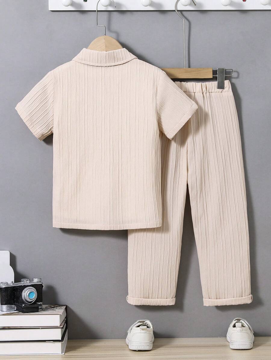 SHEIN 2pcs Set Young Boys Casual College Style Letter Print Polo Shirt And Shorts, Breathable Fabric, Suitable For Daily, School Trips, Spring Summer Seasons