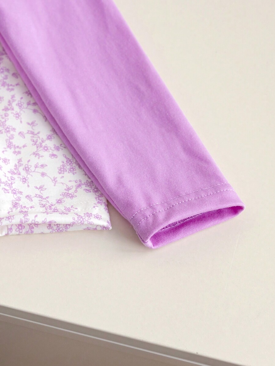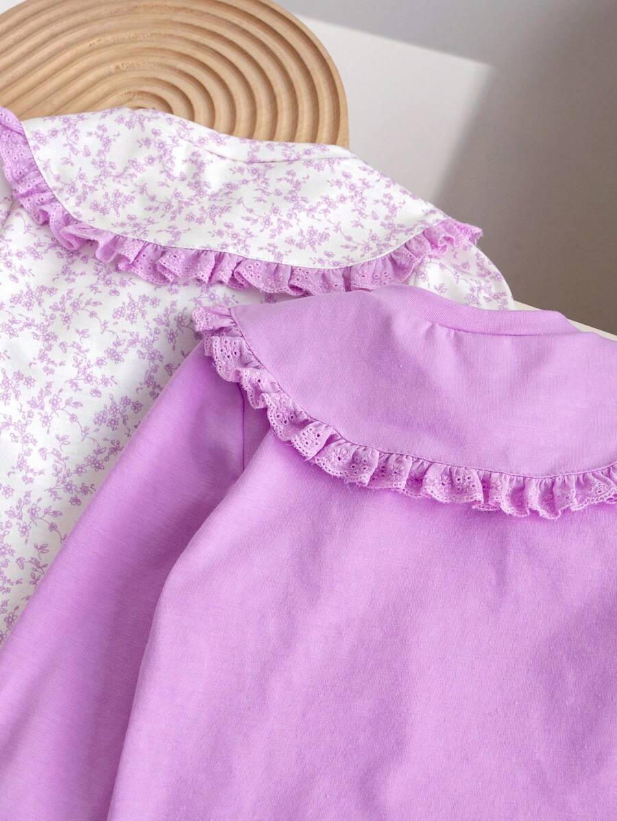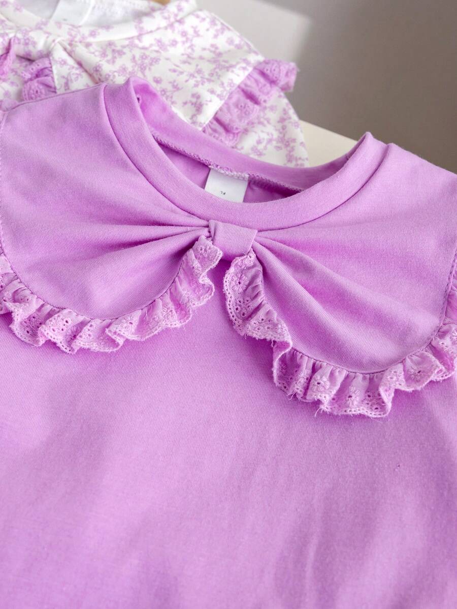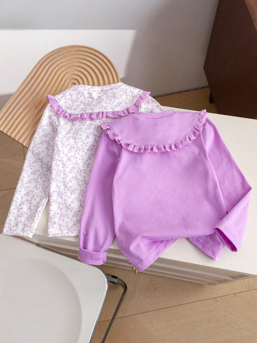 SHEIN 2pcs/Set Young Girl Peter Pan Collar Floral Countryside T-Shirt