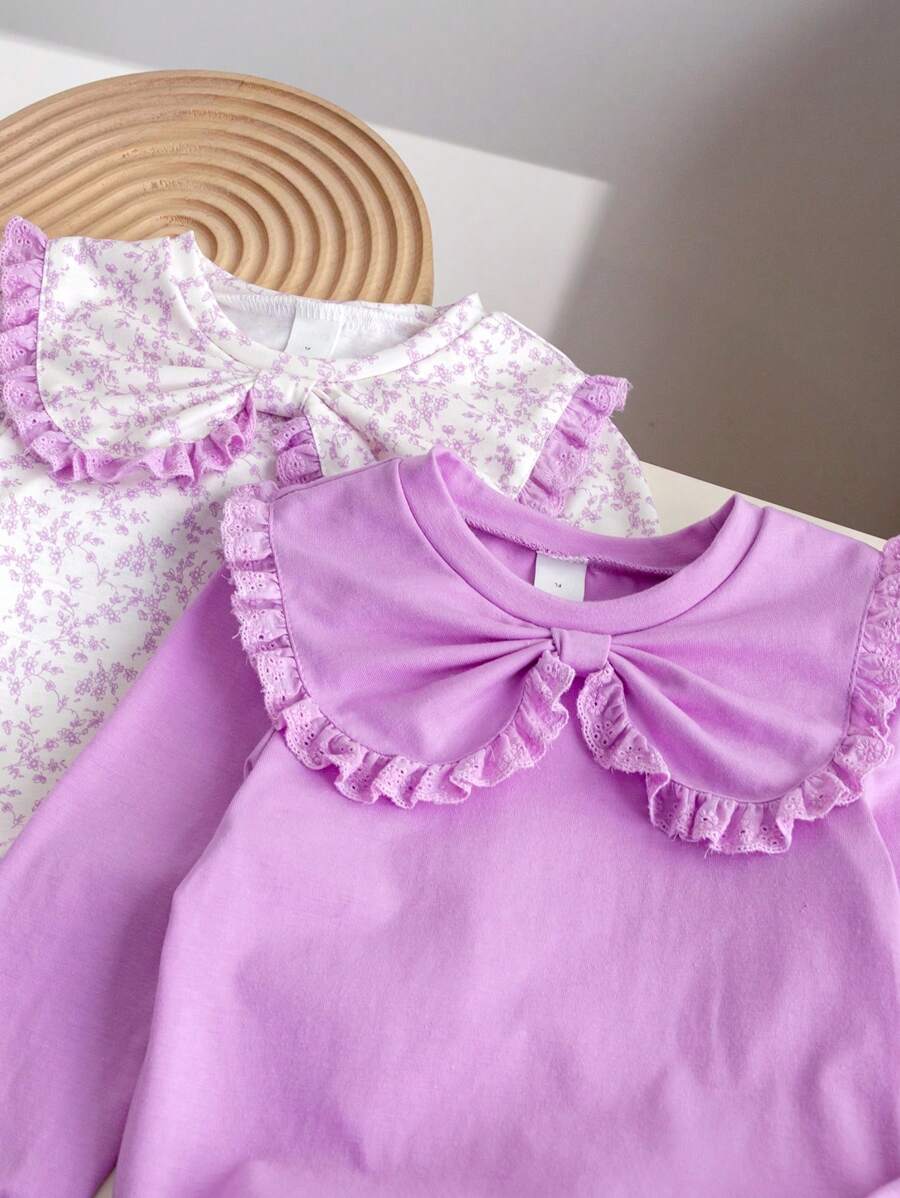 SHEIN 2pcs/Set Young Girl Peter Pan Collar Floral Countryside T-Shirt quantity