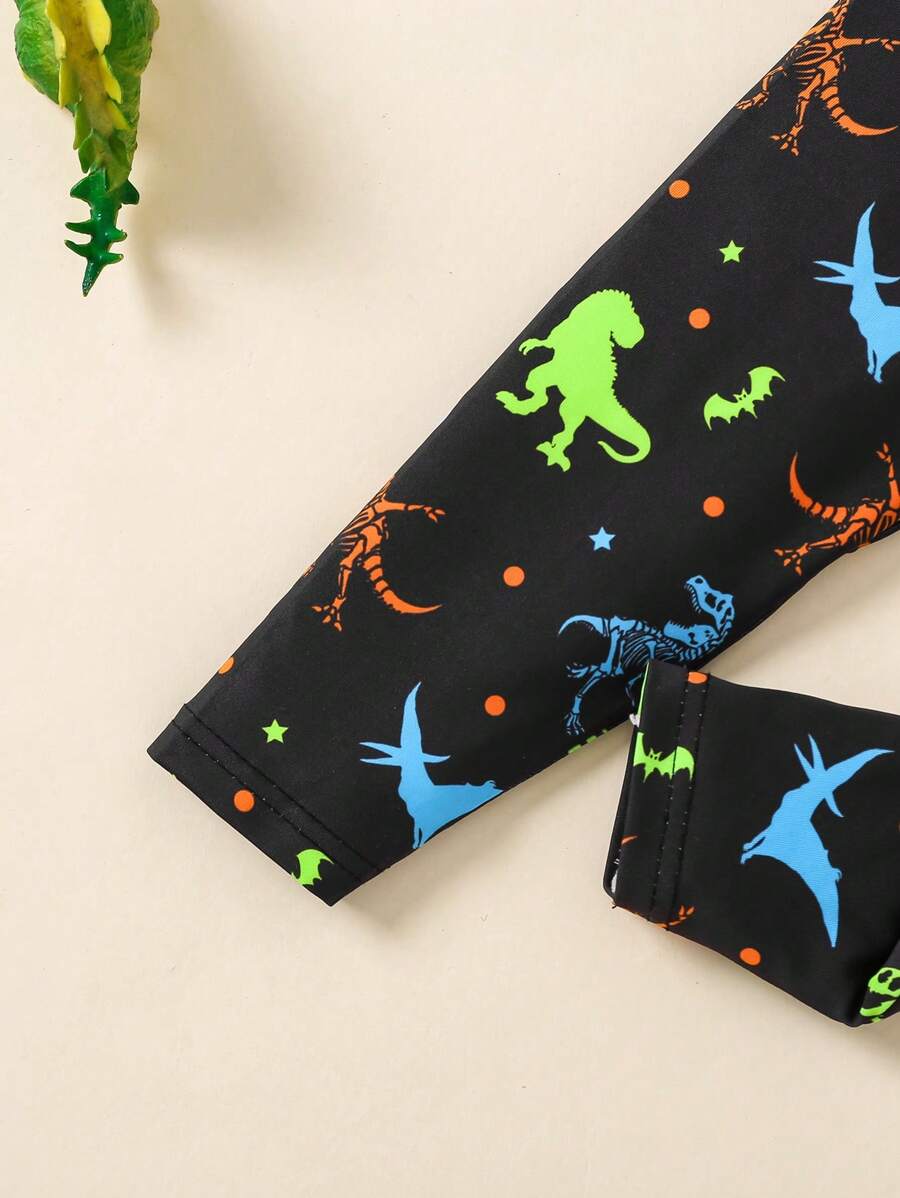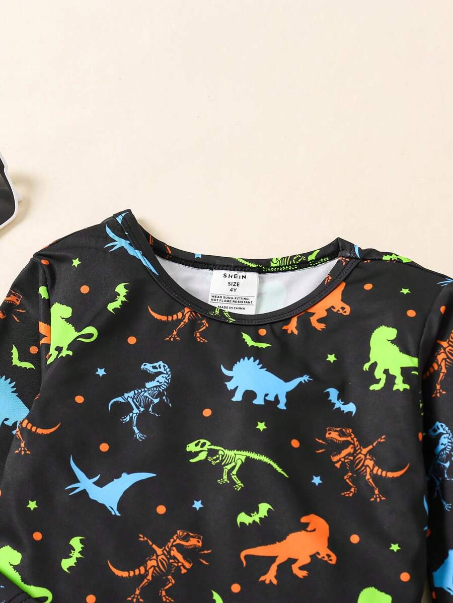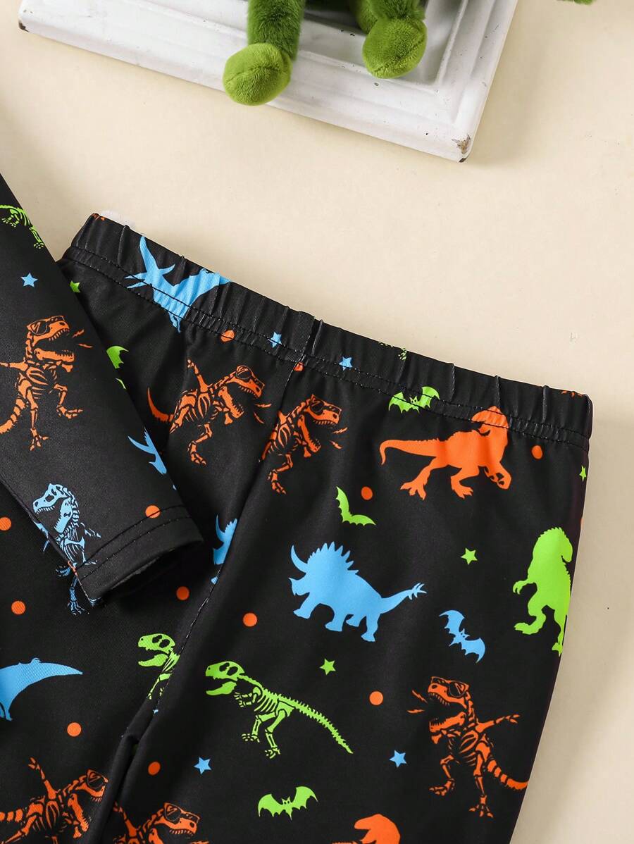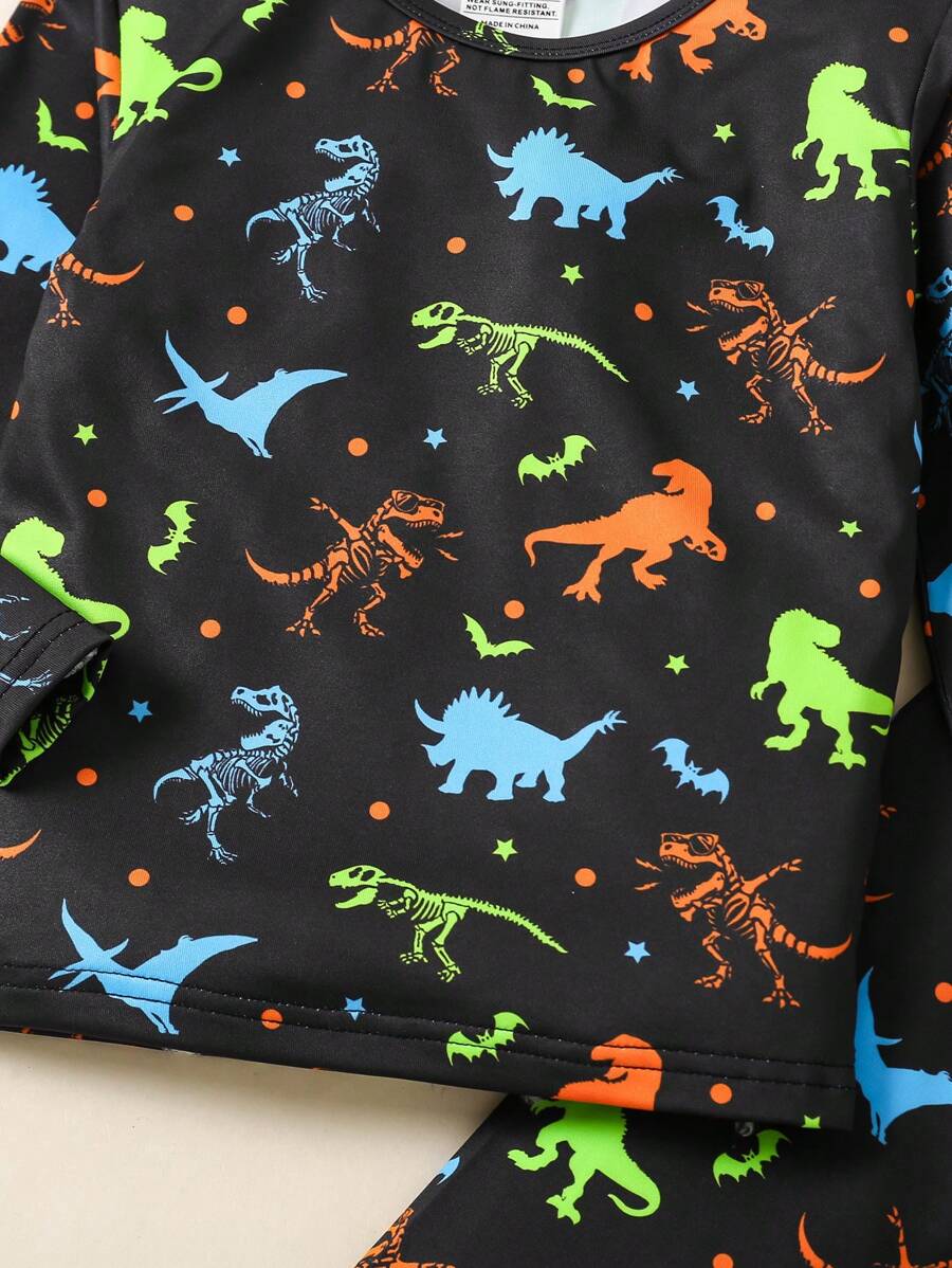 / SHEIN 2pcs Young Boy Snug Fit Glow-In-The-Dark Dinosaur Print Long Sleeve Top And Pants Knitted Pajama Set