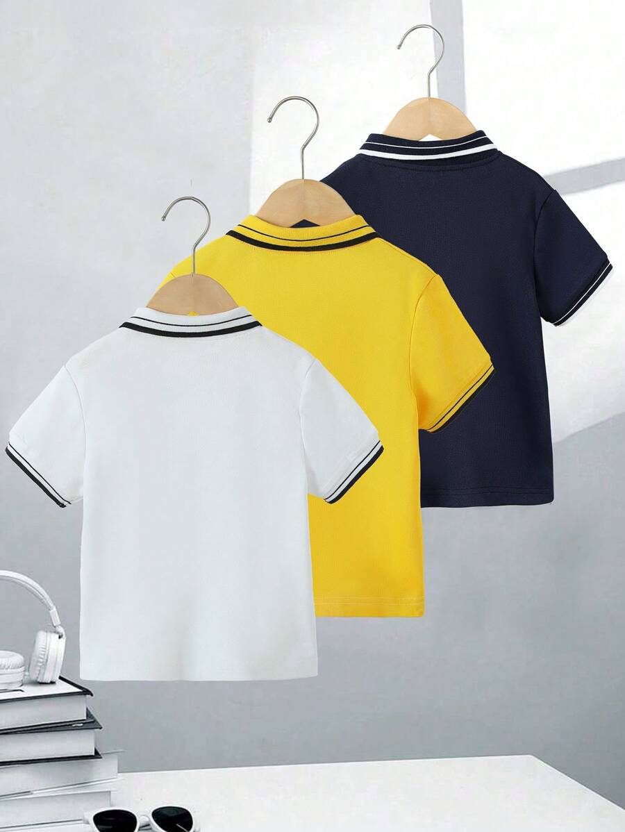 / SHEIN 3pcs/Set Classic Fashionable Colorblock Knight Print Short Sleeve Polo Shirt For Young Boys, Suitable For 4-7 Years Old In Spring And Summer