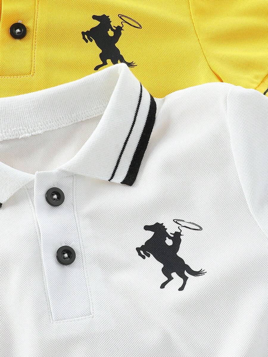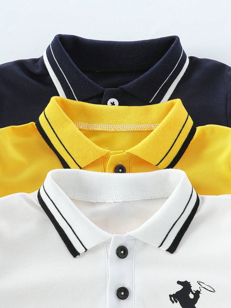SHEIN 3pcs/Set Classic Fashionable Colorblock Knight Print Short Sleeve Polo Shirt For Young Boys, Suitable For 4-7 Years Old In Spring And Summer quantity