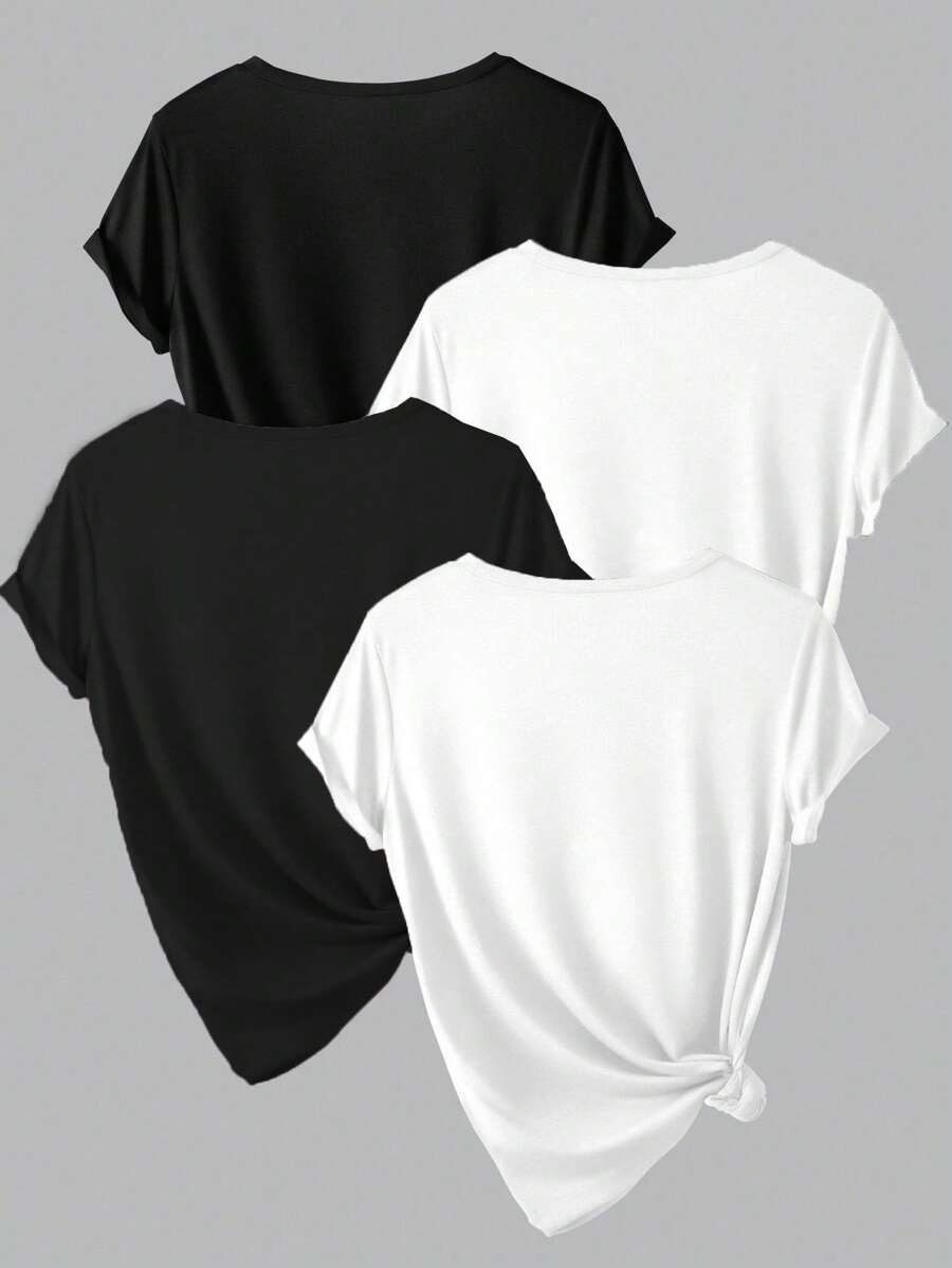 / SHEIN 4pcs Women’s Casual Solid Color Round Neck Loose Fit Short Sleeve T-Shirts, Summer Basic Tees