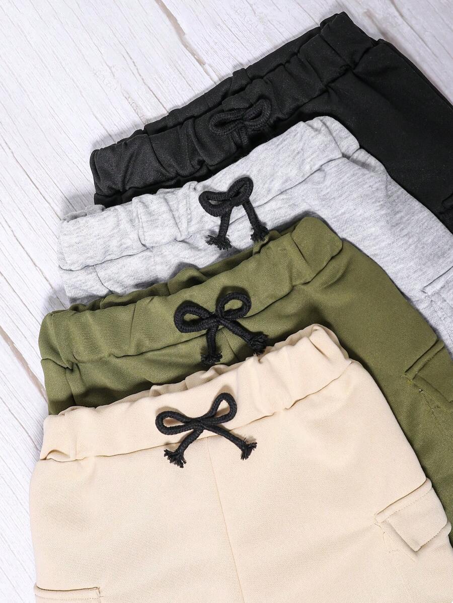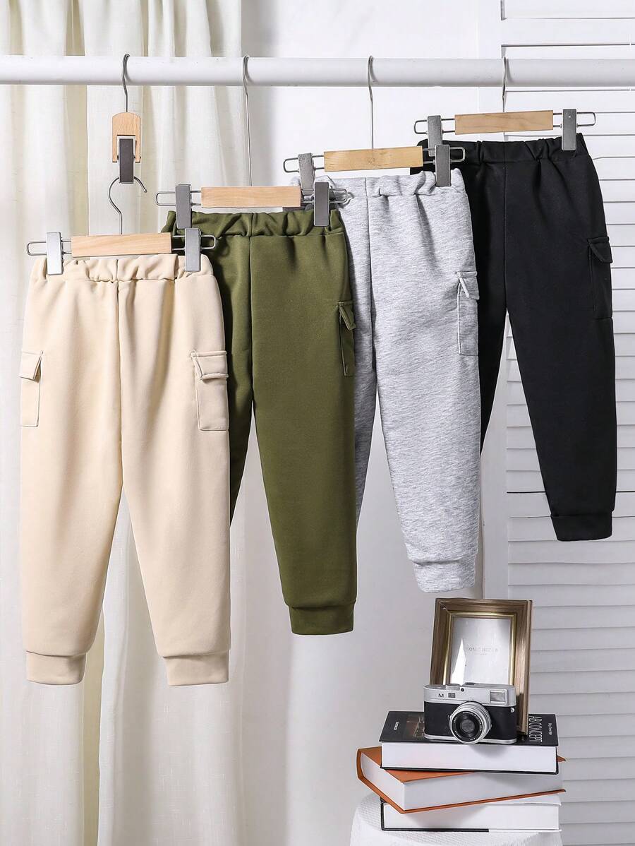 SHEIN 4pcs Young Boys Casual Drawstring Hem Cargo Pants With Pockets, Comfortable Breathable Fabric Suitable For Outdoor Play, Travel, School, Autumn/Winter Jogger Pants For Boysjogger Pants For Kidsjogger Pants For Kids Boyjoggers For Boyskids Jogger Pants
