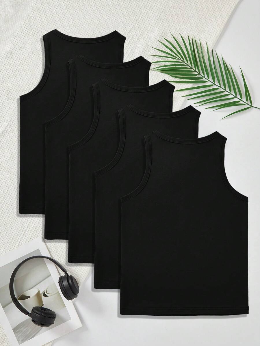 / SHEIN 5-Pack Young Boy Colorful Round Neck Casual Vest Underwear Set