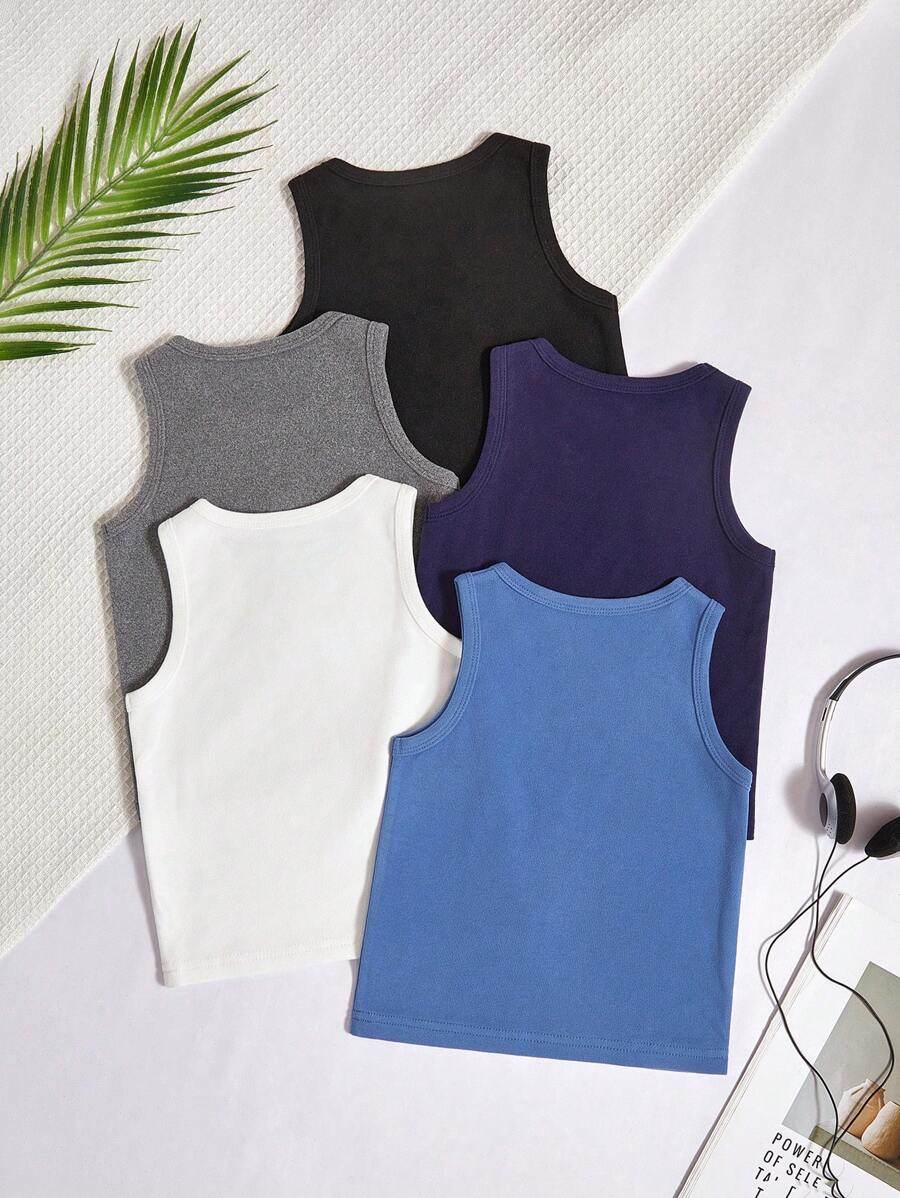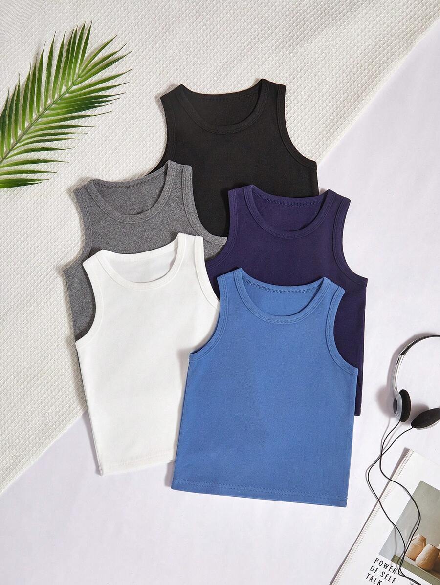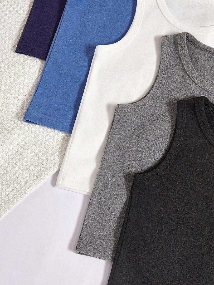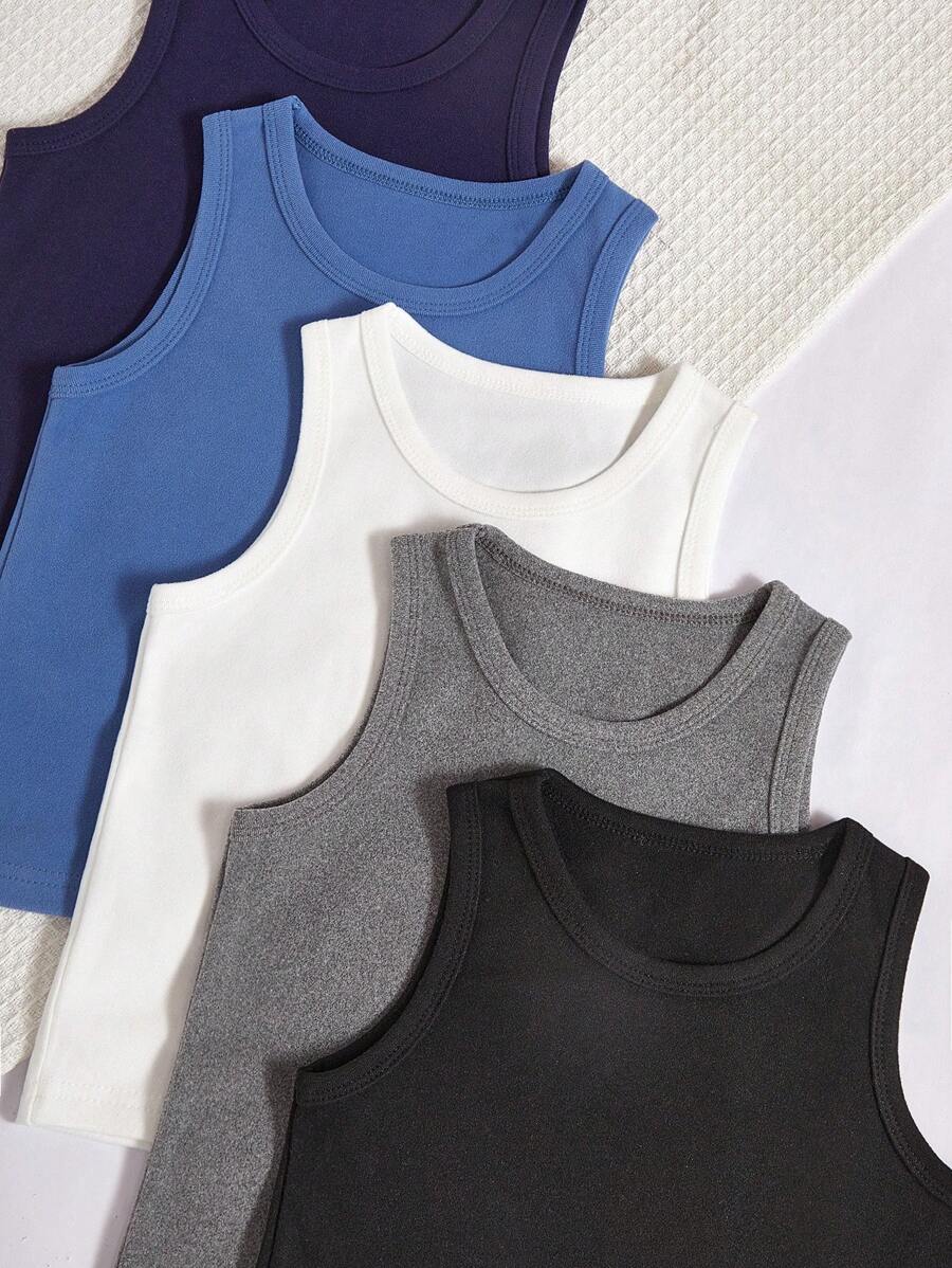 / SHEIN 5 Pcs/Set Boys’ Casual Solid Color Comfortable Sleeveless Vest Undergarment, Minimalist Style
