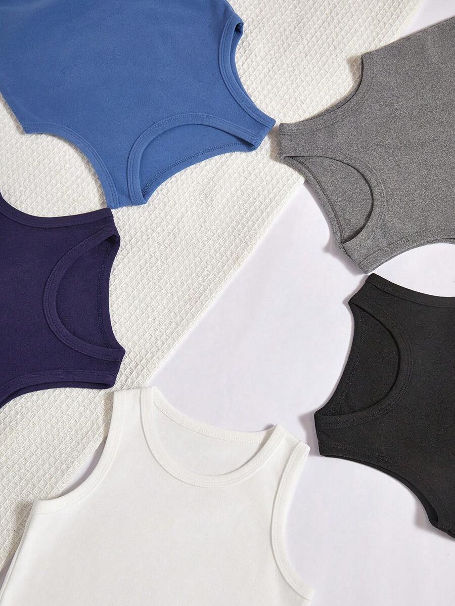 SHEIN 5 Pcs/Set Boys' Casual Solid Color Comfortable Sleeveless Vest Undergarment, Minimalist Style quantity