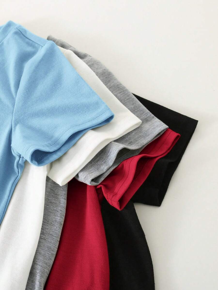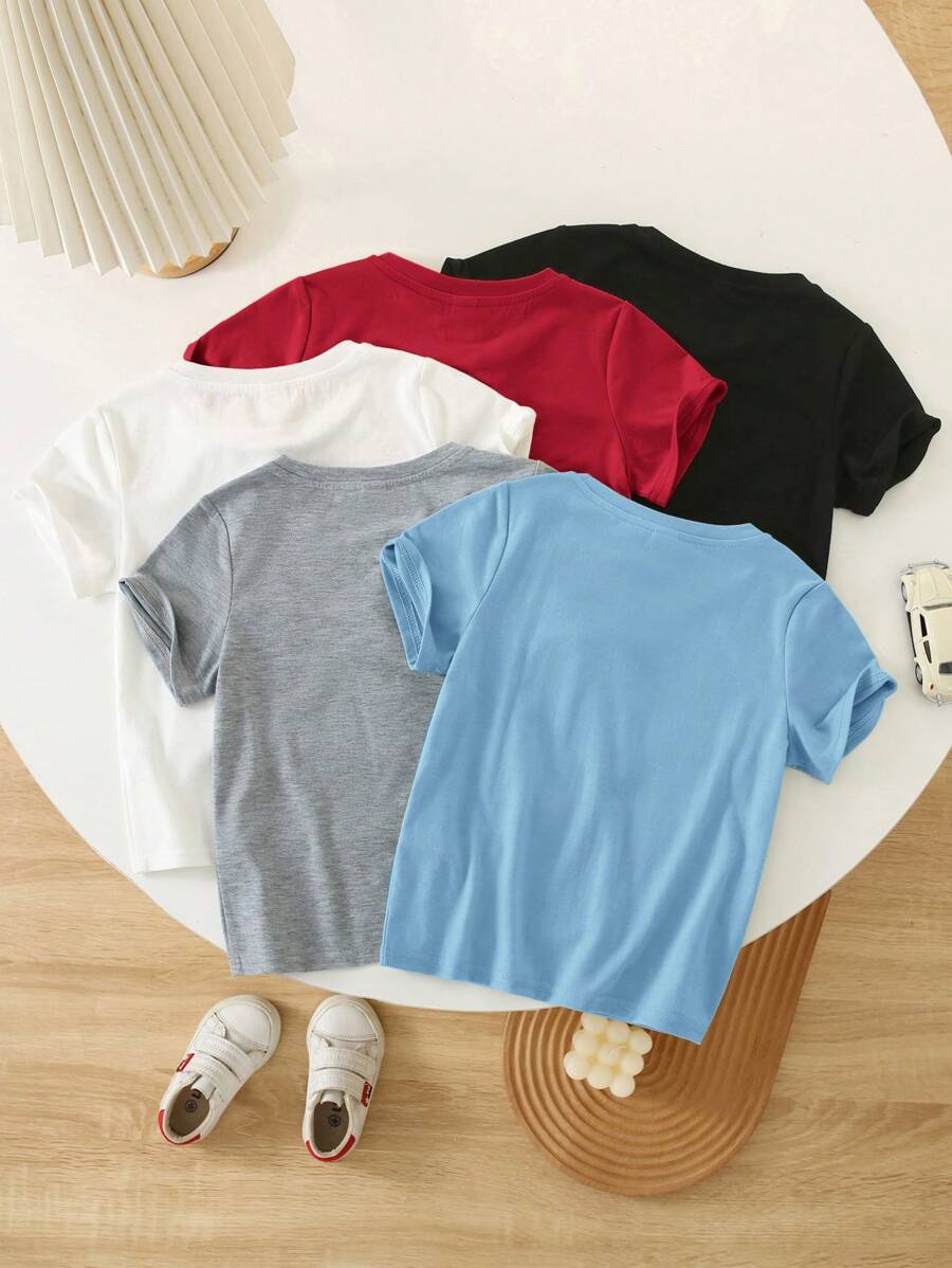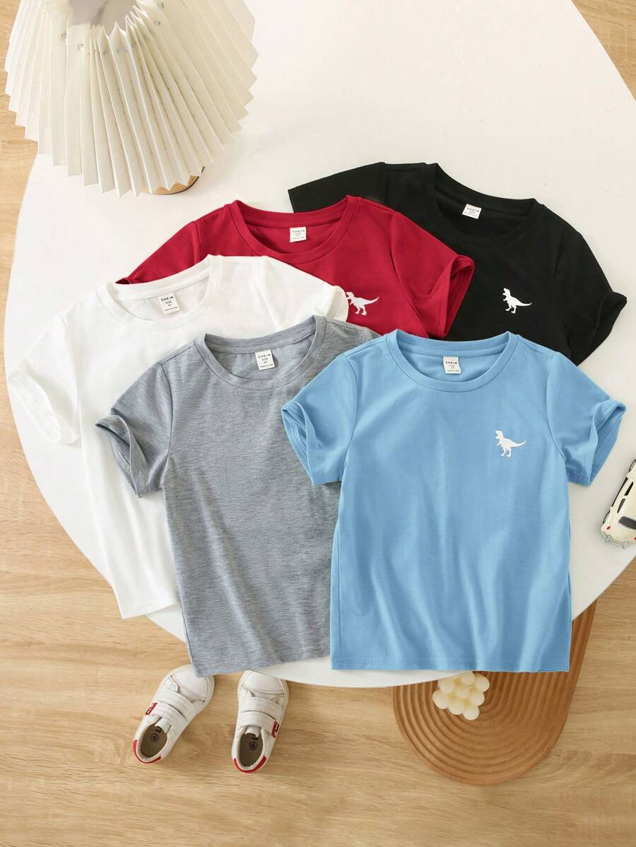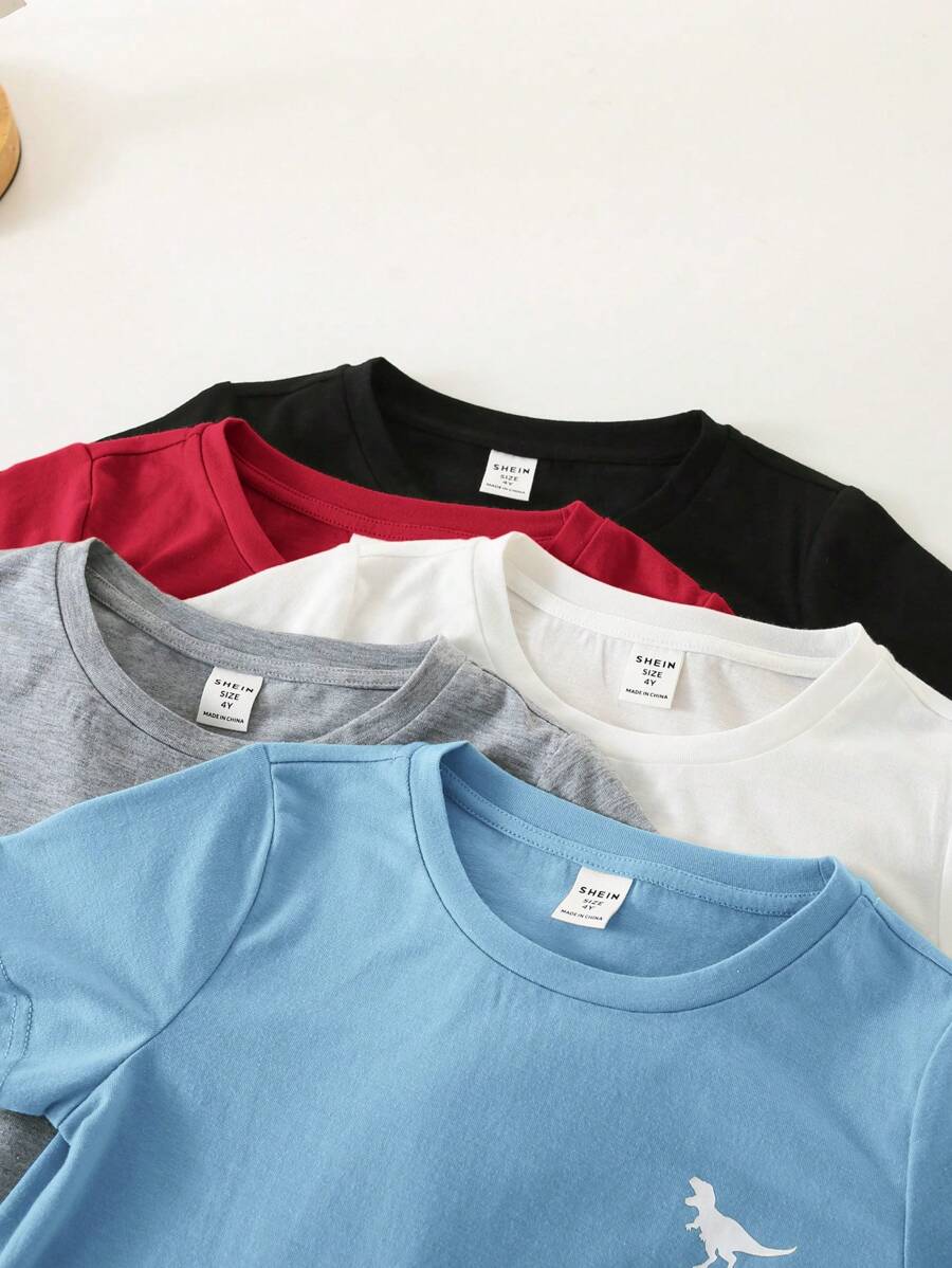 / SHEIN 5pcs/Pack Young Boy Cute & Comfortable Dinosaur Pattern Round Neck Short Sleeve T-Shirts