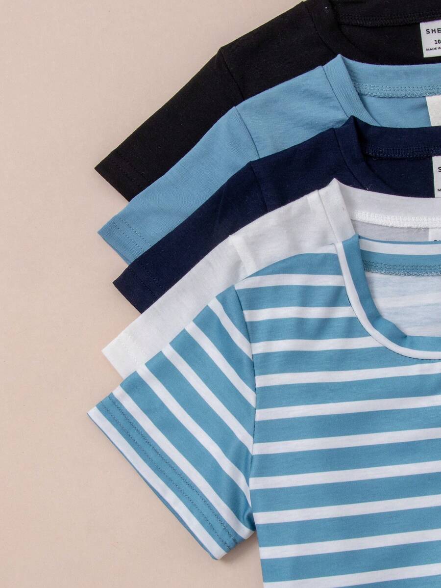 SHEIN 5pcs Young Boys’ Crew Neck Short Sleeve T-Shirts