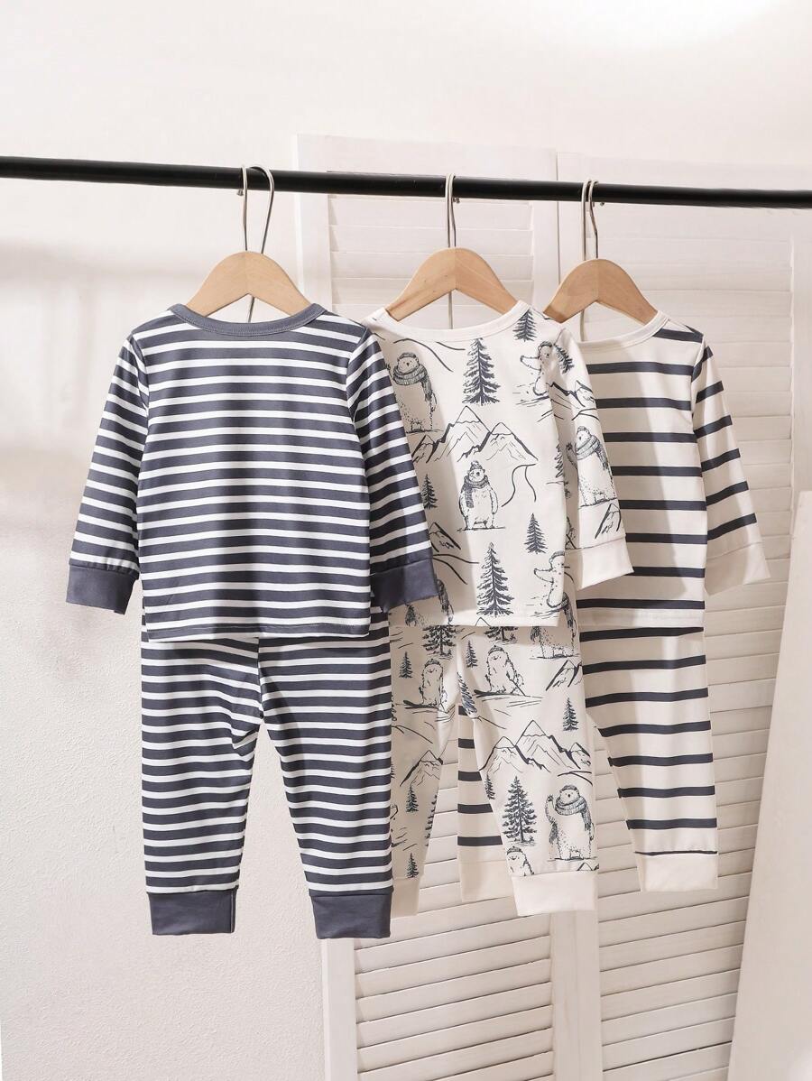 SHEIN 6pcs Baby Boy Casual Yeti Print Long Sleeve T-Shirt Set, Fall/Winter