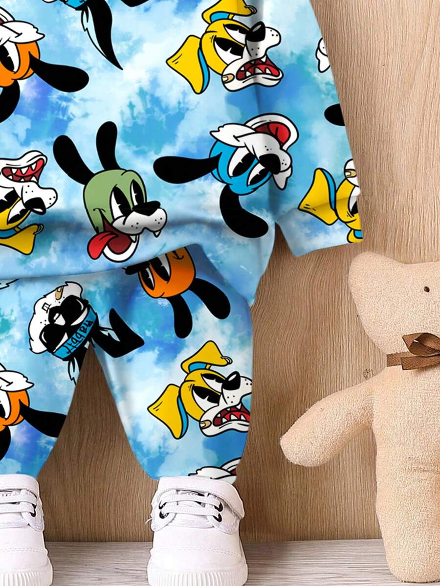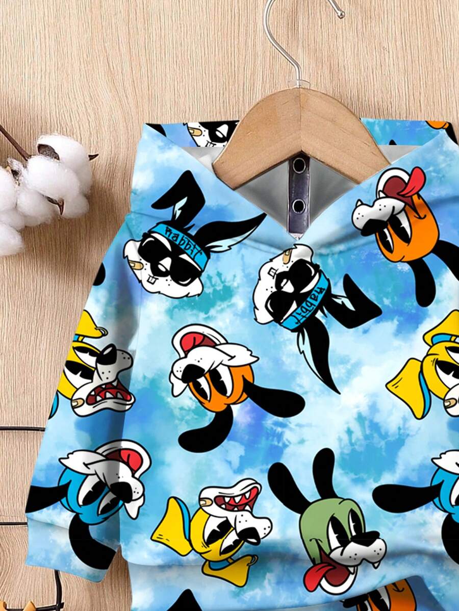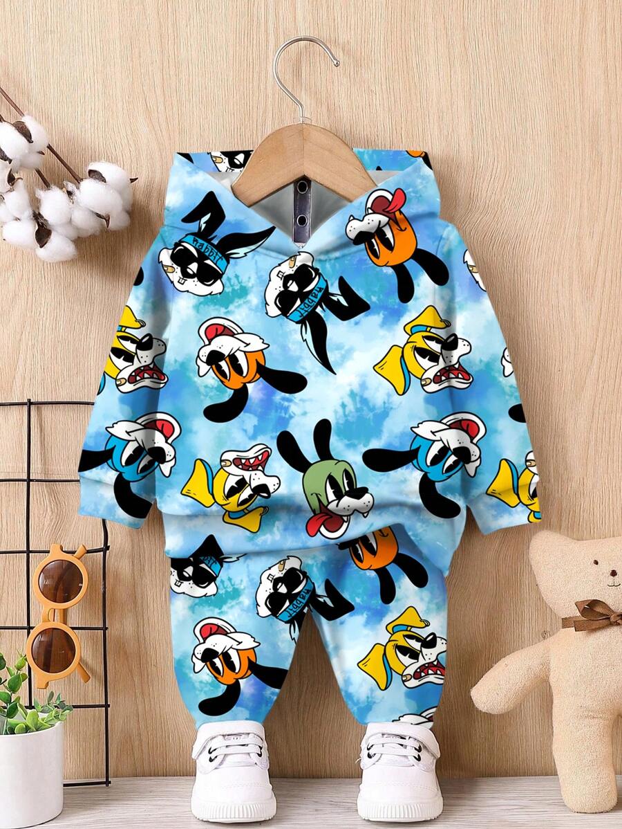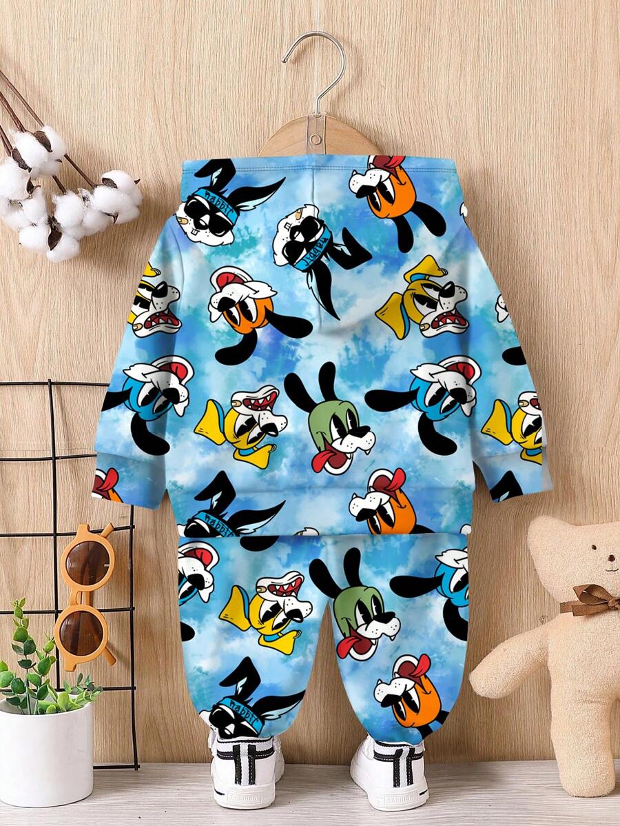 / SHEIN Baby Boy Casual Minimalist Cartoon Animal Pattern Loose Comfortable Knit Soft Hoodie & Pants Set, Suitable For Autumn/Winter