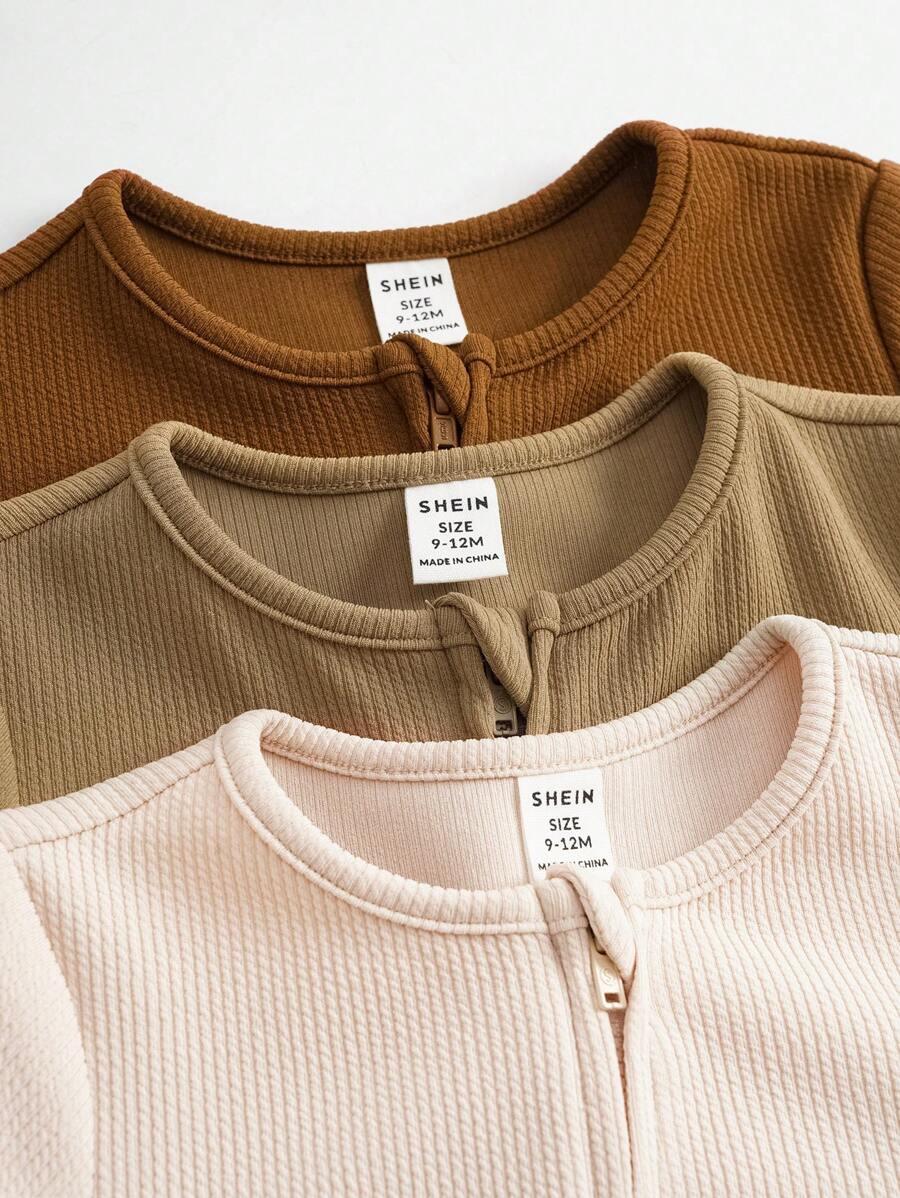 SHEIN Baby Boy Cozy Solid Color Crew Neck Long Sleeve Zipper Front Soft Pajama Jumpsuit Romper