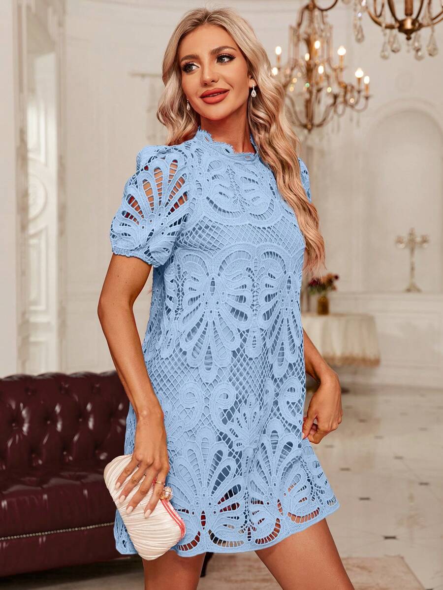 SHEIN Clasi Ladies’ Plain Lace Short Sleeve Dress